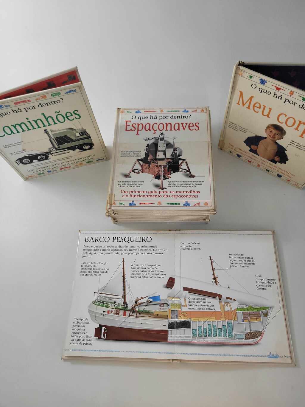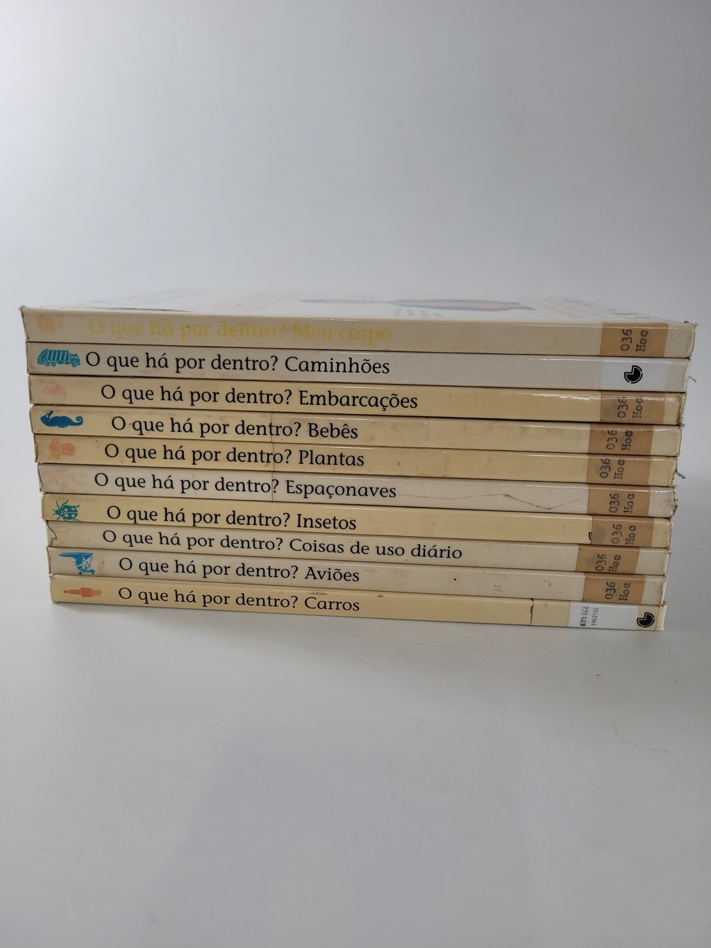 Títulos contidos na coleção ” O Que há por Dentro”: Meu Corpo; Caminhões; Embarcações; Bebês; Espaçonaves; Plantas; Insetos; Coisas de uso Diário; Carros; Aviões.