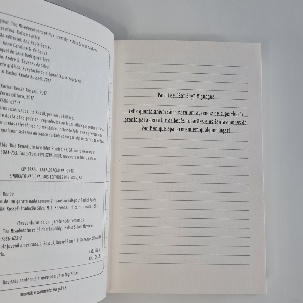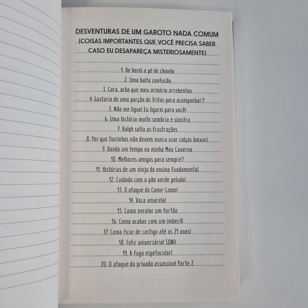 Max Crumbly está de volta no segundo livro da série da mesma autora de Diário de uma garota nada popular. Em Desventuras de um garoto nada comum 2, vamos conhecer o desfecho da aventura em que Max estava envolvido no primeiro livro da série. Em sua aventura no livro 1, o nosso herói havia se esborrachado em cima de uma pizza depois de cair da tubulação de ar do Colégio South Ridge, em plena madrugada ? e ele estava cercado por três criminosos implacáveis! Será que o Max vai ser moído em pedacinhos, como o queijo na massa daquela pizza? Poderá sua amiga e aliada Erin ajudá-lo a sair ileso dessa situação pegajosa?Depois de descobrir o que aconteceu com Max, vamos cair em uma história daquelas que só os personagens mais espetaculares podem nos proporcionar.Como resultado dessa combinação de personagens surpreendentes e aventuras inimagináveis, o livro 2 desta série, além de retomar a primeira aventura de Max, vai deixar todos os fãs com vontade de conhecer a próxima aventura do protagonista.