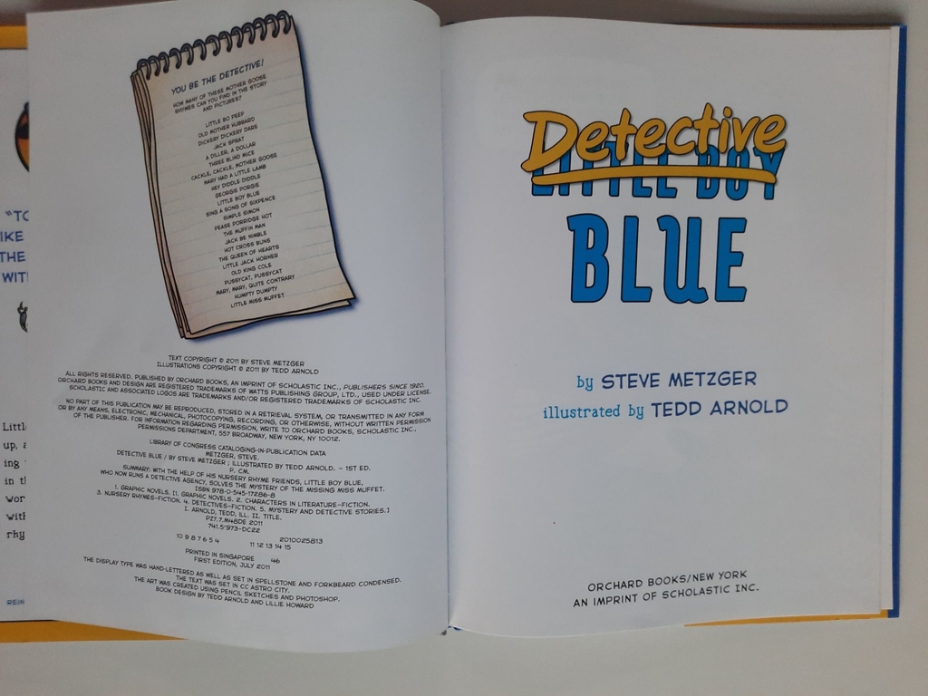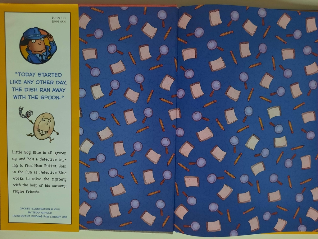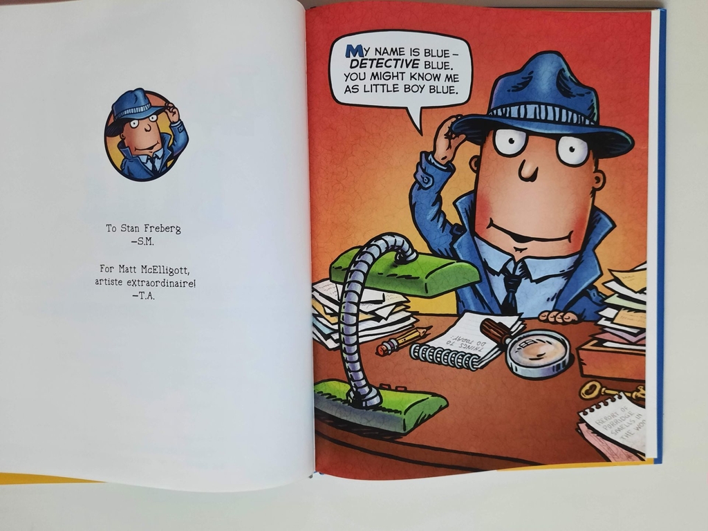 Little Boy Blue is all grown up, and he’s a detective working to find Miss Muffet. Join in the fun as Detective Blue tries to crack the case with the help of his nursery rhyme friends. The fun is never-ending as Detective Blue interrogates grown-up nursery rhyme characters in order to solve the Missing Muffet Mystery. Kids, parents, and teachers can find a list of referenced nursery rhymes and go back into the story to find the characters.