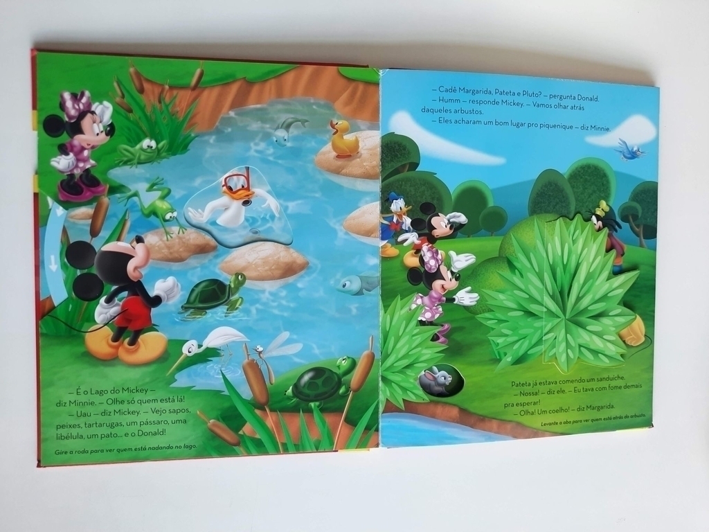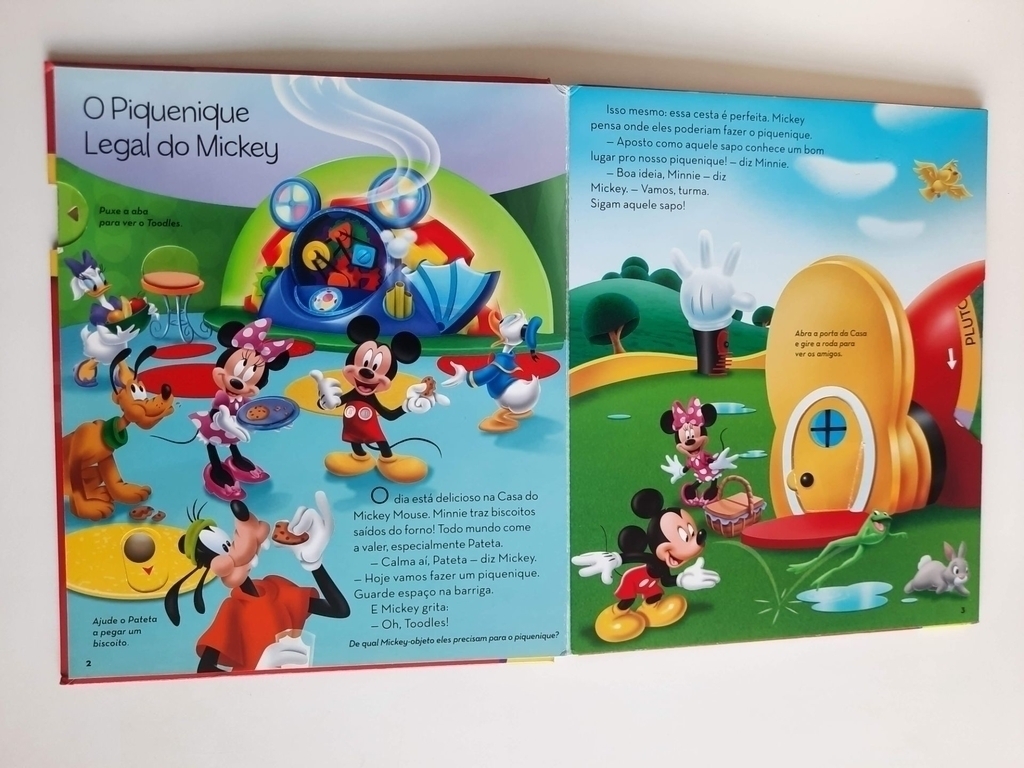 Mais um dia animado e divertido na casa do Mickey Mouse. e você está convidado para a festa! Neste livro interativo há toneladas de diversão e de atividades educativas. É só levantar as abas e deslizar os painéis para revelar animais e objetos! Explore a magia da casa do Mickey Mouse e descubra um mundo encantador de aprendizado e diversão.