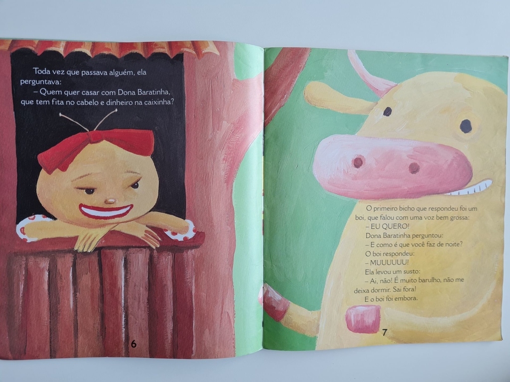 Quem quer casar com Dona Baratinha, que tem fita no cabelo e dinheiro na caixinha? Talvez Dona Baratinha (este) seja um dos livros infantis que mais tenham influenciado a tomada de posição feminina pela independência da dominação masculina. Dona Baratinha, que já tem dinheiro, acha que precisa de um marido para ser feliz, no entanto, não quer qualquer um: ele não pode fazer muito barulho, porque ela tem o sono leve. Então, quem sabe um ratinho? Mas e se o ratinho for guloso demais? E se ele morrer antes do casamento? Será que Dona Baratinha vai ficar triste? O reconto de Ana Maria Machado, ilustrado pelo pincel colorido de Maria Eugênia, tem um final inusitado e engraçado, mesmo quando lido por adultos. Talvez pela alta carga de ambiguidade, que pode passar despercebida aos olhos dos menores, é uma história que merece ser discutida com os pequenos leitores a fim de direcionar a interpretação, pois, ao final, nossa heroína acha mesmo muito bom que o ratinho tenha morrido, assim ela poderá gastar todo seu dinheiro só se divertindo. Por que será que Dona Baratinha tem tanto desprezo pelo sexo masculino? Resenha Especializada – A Taba