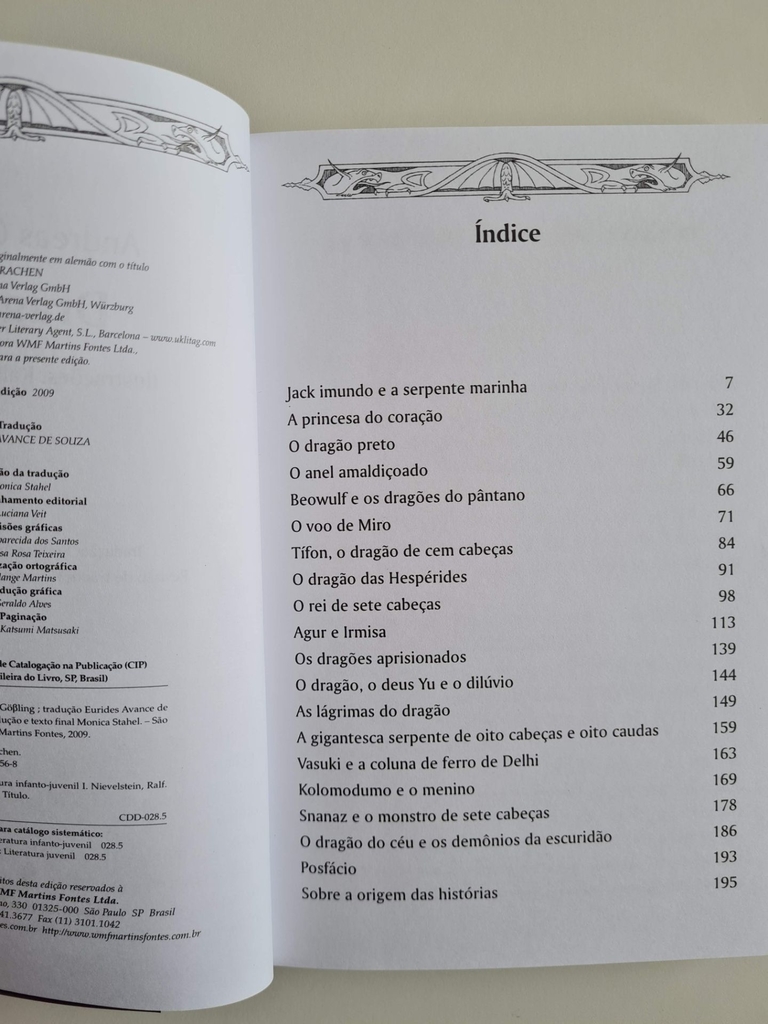 Quase sempre os dragões são seres enormes, de força descomunal. Em geral têm corpo de serpente e são alados. Com seus poderes mágicos, eles controlam os elementos primordiais, sendo capazes, por exemplo, de cuspir fogo ou de agitar o mar em imensos vagalhões. Neste livro, em contos de várias civilizações e várias épocas há dragões do céu e da terra, do mar e das montanhas, que usam seus poderes para o bem ou para o mal.