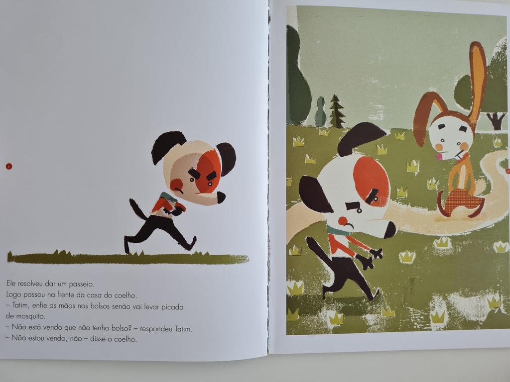 O cachorro Tatim saiu de casa mal-humorado, puxando briga com todo o mundo. E, na hora H, ele acusava: “Foi ele que começou.” Os outros animais foram se afastando e Tatim ficou sozinho. Mas, quando apareceu o gato e lhe ofereceu um bombom, ele percebeu que comer chocolate na companhia de um amigo é muito melhor do que fazer desaforo.