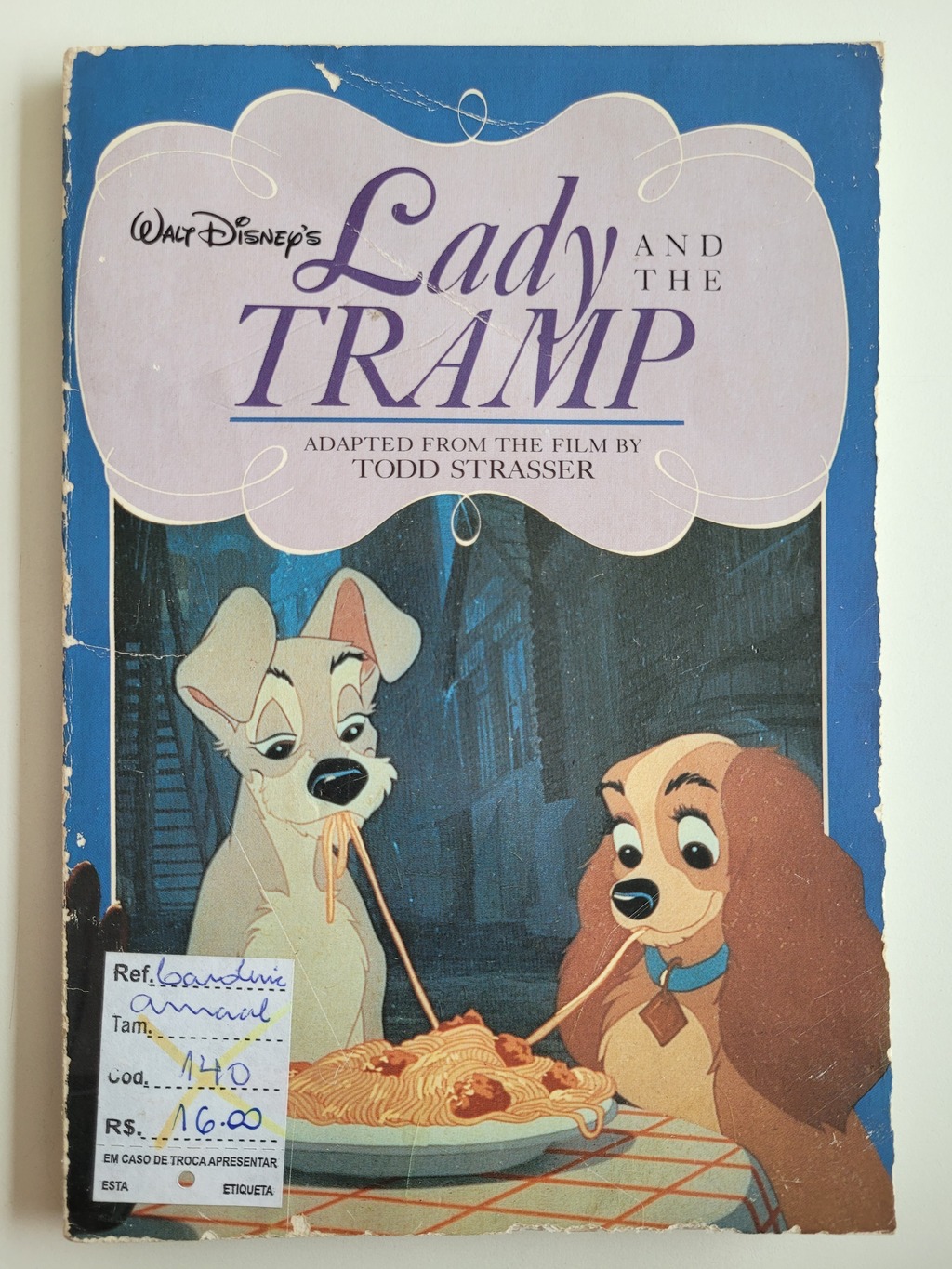 It’s a dog’s life, after all.. Lady, a beautiful cocker spaniel, lives a proper and pampered life with her owners, Jim Dear and Darling. Then she stumbles across ‘Tramp, a sweet-talking rough-and- tumble mutt from “*the wrong side of the tracks.“ ‘Tramp likes to have fun. He’s foot- loose and fancy-free. And, as Lady discovers, he’s nothing but trouble! But Tramp proves he’s more than just a junkyard Romeo when herisks his life to save Jim Dear and Darling’s baby…and wins Lady’s heart. All the charm, romance, and adventure of the 1955 Walt Disney animated classic is brought to life in this novelization, which in- cludes eight pages of color stills from the movie.