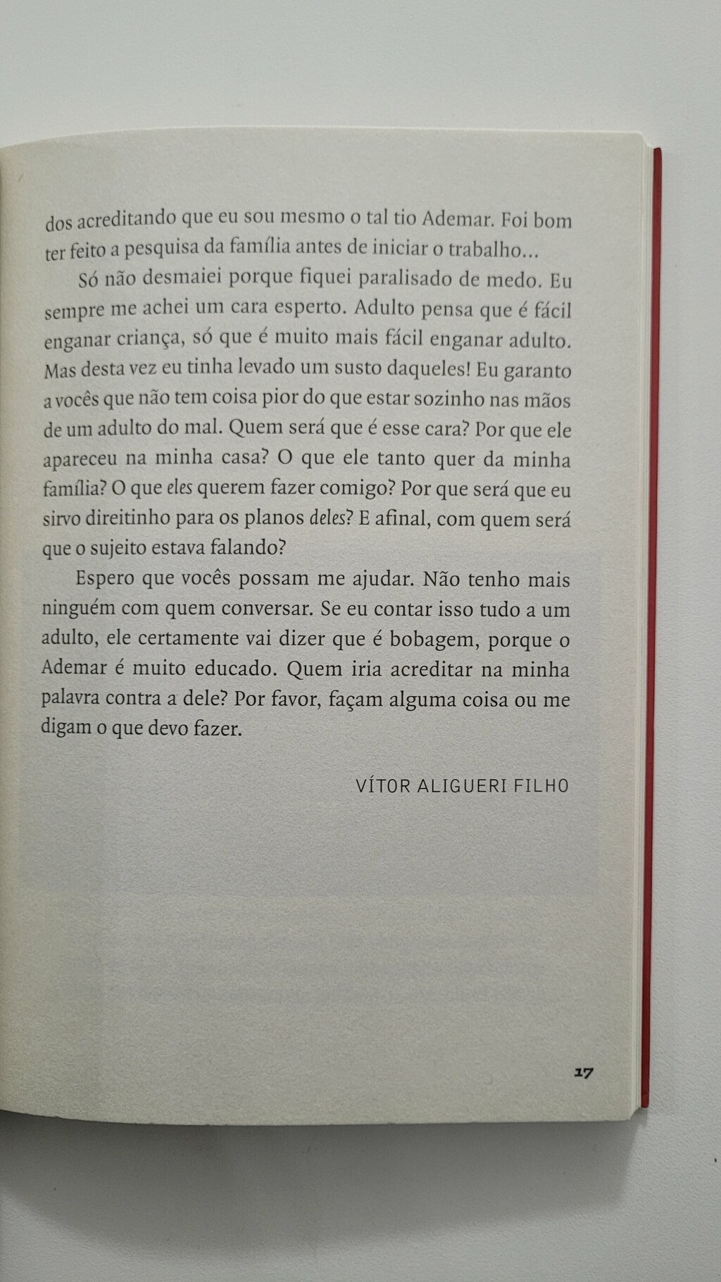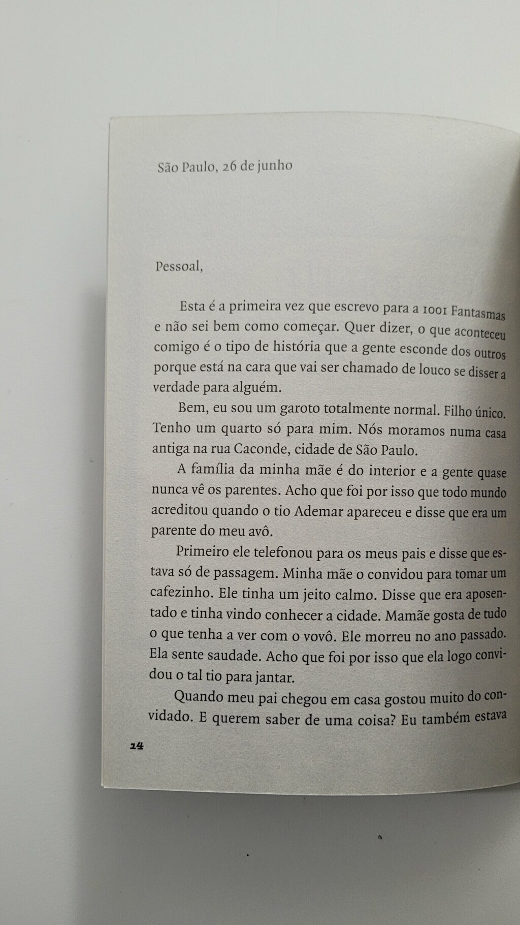 Vítor começa a ter problemas depois que um suposto parente vem morar com sua família. “Tio” Ademar conquista a confiança dos pais dele e logo os convence a fazer uma viagem. A partir daí, passa a infernizar a vida do garoto, de quem quer se valer para levar a cabo um plano perverso. Mas Vítor conta com o bom Guimarães, fantasma que vem visitá-lo à noite, e com os colegas da 1001 Fantasmas, sociedade milenar que lhe ensina uma lição valiosa: quando o que está em jogo é a solidariedade entre as pessoas, perigosos não são os fantasmas, mas os seres humanos. Por meio da correspondência entre o protagonista e os membros da sociedade, Heloisa Prieto estabelece um diálogo direto e informal com os jovens leitores.