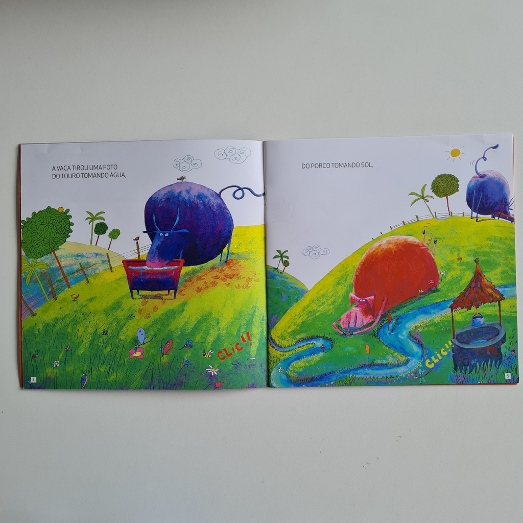 Nesta divertida história, Adriano Messias apresenta ao leitor uma vaca um tanto atrapalhada, que fica o tempo todo fotografando so bichos de um sítio. O que ela não sabe é que a sua máquina fotográfica pode lhe pregar uma peça. Com as ilustrações bem -humoradas de Jean-Claude R. Alphen, a vaca fotógrafa é uma ótima oportunidade para que o pequen leitor entre em contato com a paisagem e os bichos do campo de forma lúdica e criativa.