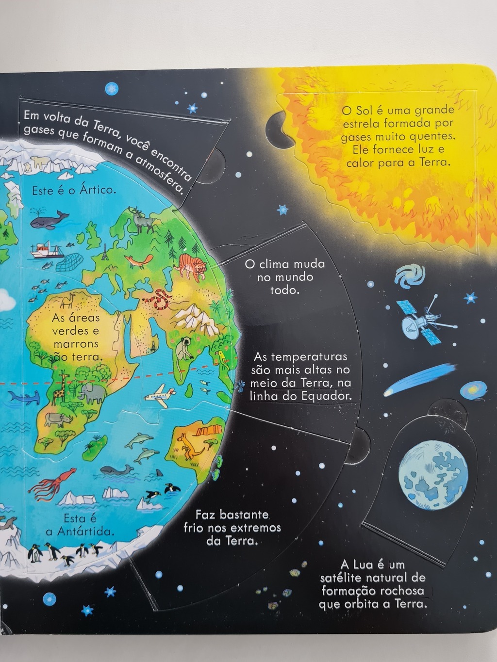 De a volta ao mundo com este livrinho. Descubra do que a Terra é feita, quem habita as florestas, como os rios desembocam no mar e muito, muito mais!