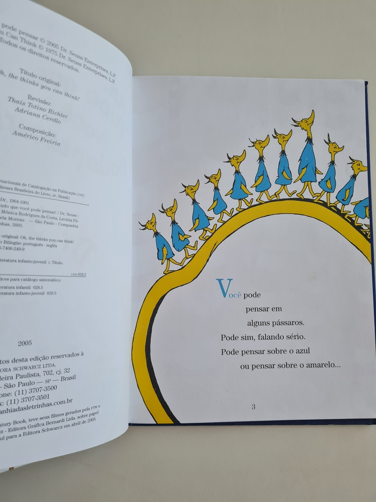 Um dos autores de maior sucesso na história da literatura infantil, Theodor Seuss Geisel ou, simplesmente, Dr. Seuss encantou gerações de crianças com personagens excêntricos, mundos esquisitos e rimas malucas. Ah, tudo que você pode pensar! transporta o leitor a uma dessas terras imaginárias, povoada por seres fantásticos e repleta de paisagens surpreendentes. Um passeio em “Nonoit-Él” pode logo virar um mergulho em “Da-Dagos”, e a única garantia aqui é a de uma surpresa a cada esquina. Os 44 livros infantis de Dr. Seuss já venderam mais de 100 milhões de exemplares e alguns de seus personagens, como o Grinch e o Lorax, tiveram suas histórias adaptadas para o cinema. A edição bilíngüe permite que as rimas originais criadas por Dr. Seuss também possam ser conhecidas pelo leitor brasileiro.