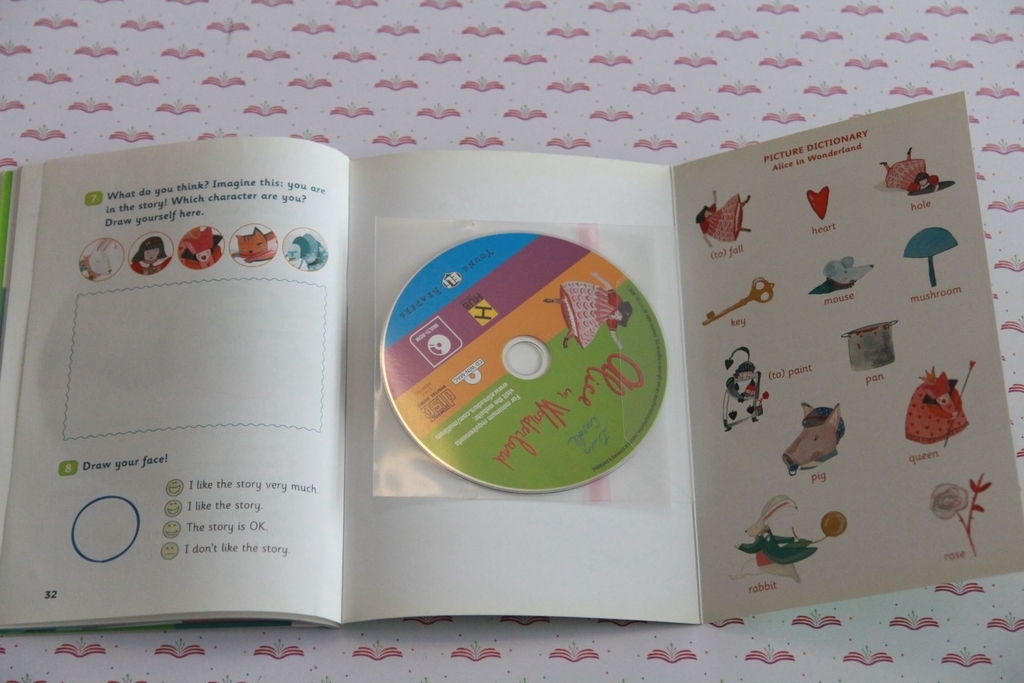 The classic story of a young girl who falls into a hole, eats and drinks poison and grows bigger and smaller. Games and language activities, An audio recording of the story, A picture dictionary.