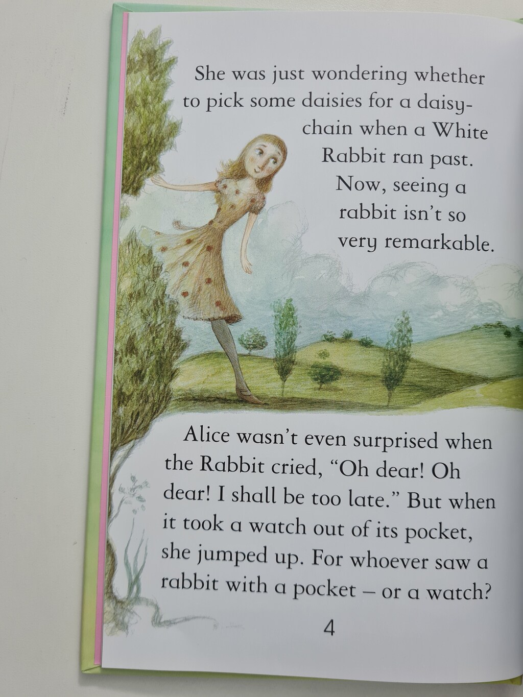 Na ordinary day becomes extradiornary when Alice foolows the White Rabbit down a rabbit hole and finds herself in Wonderland. Join her as she meets onde incredible character after another, in thias lively retelling of the classic quirky tale by Lewis Carroll.