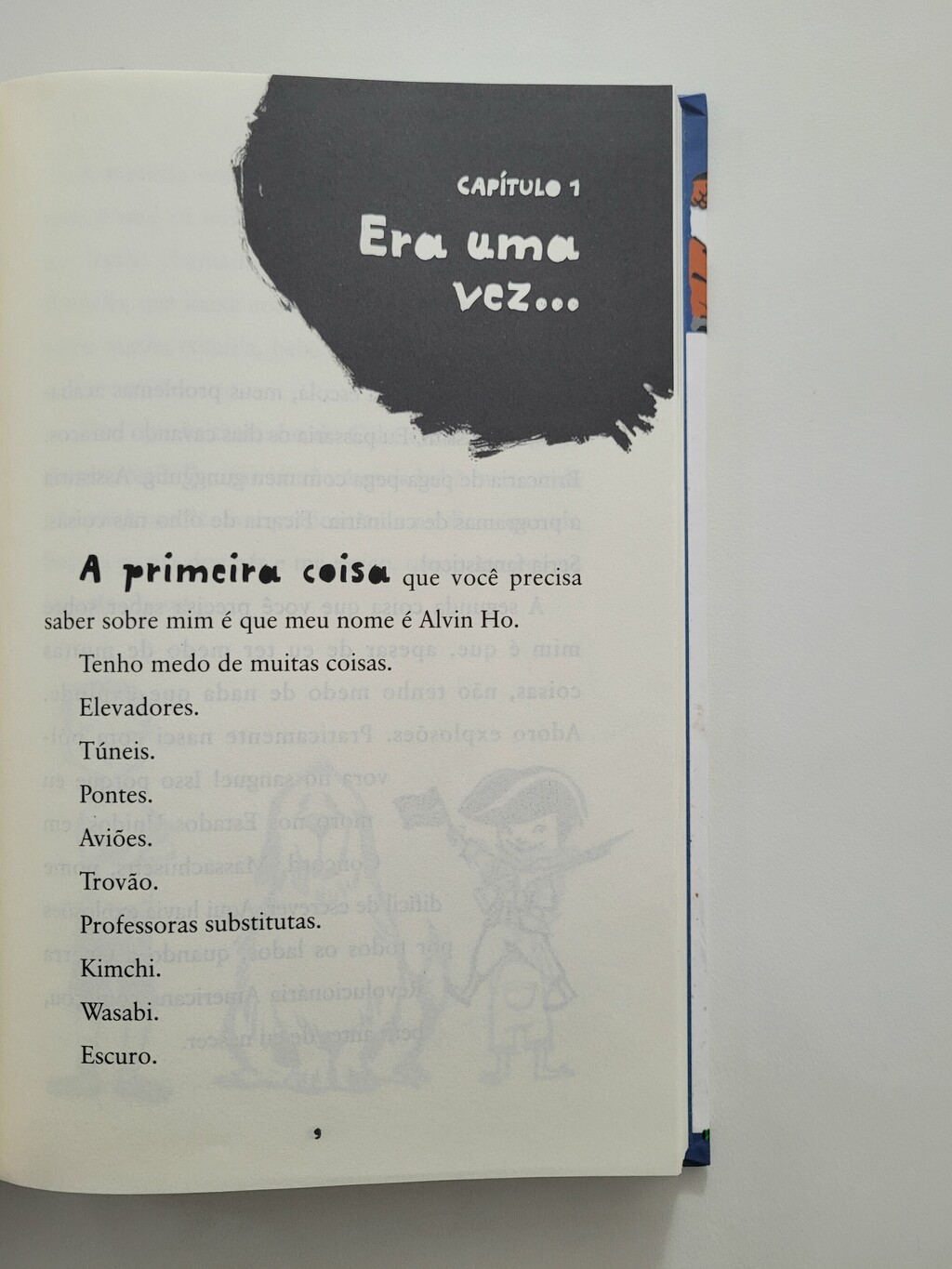 Algumas coisas que você precisa saber sobre Alvin Ho: 1. Ele tem medo de tudo. Trens, pontes, professoras substitutas, garotas, escola. De tudo. 2. Ele é americano, de Concord, Massachusetts, nome difícil de escrever. 3. Ele adora o Aquaman, a Mulher Maravilha e todos os supre-heróis do mundo. Na verdade, ele também é um supre-herói: o Homem-Bombinha! 4. Está se esforçando para ser um cavalheiro, como seu pai, mas existem muitas regras difíceis de lembrar. 5. Ele consegue falar em casa e no ônibus da escola, mas nunca, de jeito nenhum, na escola. Dá muito medo. (Veja o item 1.)