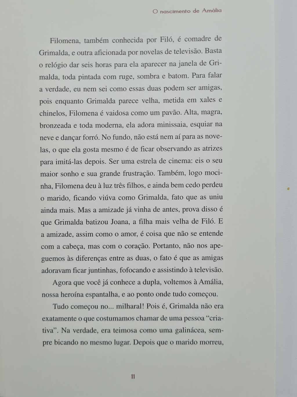 Amália, a boneca, veio ao mundo para espantar os corvos do milharal. No entanto, ela se espanta com as coisas do mundo, o feio e o bonito, o bem e o mal, pela descoberta da vida. A poesia de Fernando Pessoa está presente nessa história de amor, descoberta e renascimento, em que a boneca desperta para a vida e seus mais importantes valores.