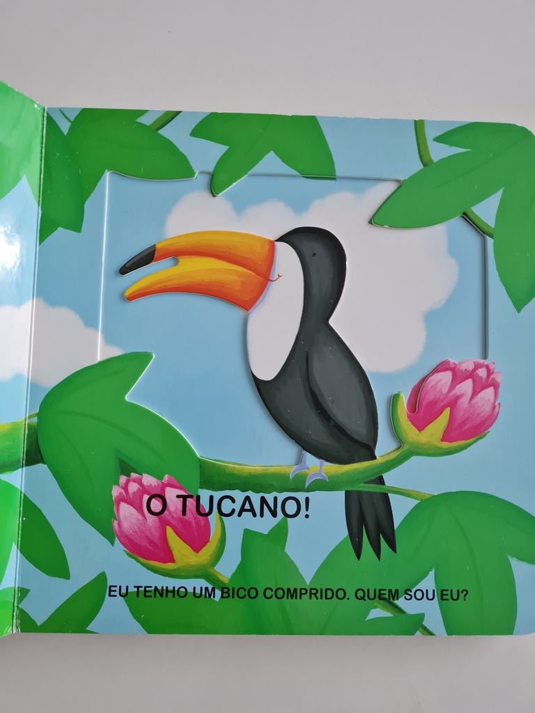 Qual animal da selva gosta de bananas? E qual deles possui um pescoço enorme? Passe seus dedinhos pelas figuras em relevo para descobrir. Responda as perguntas e divirta-se!