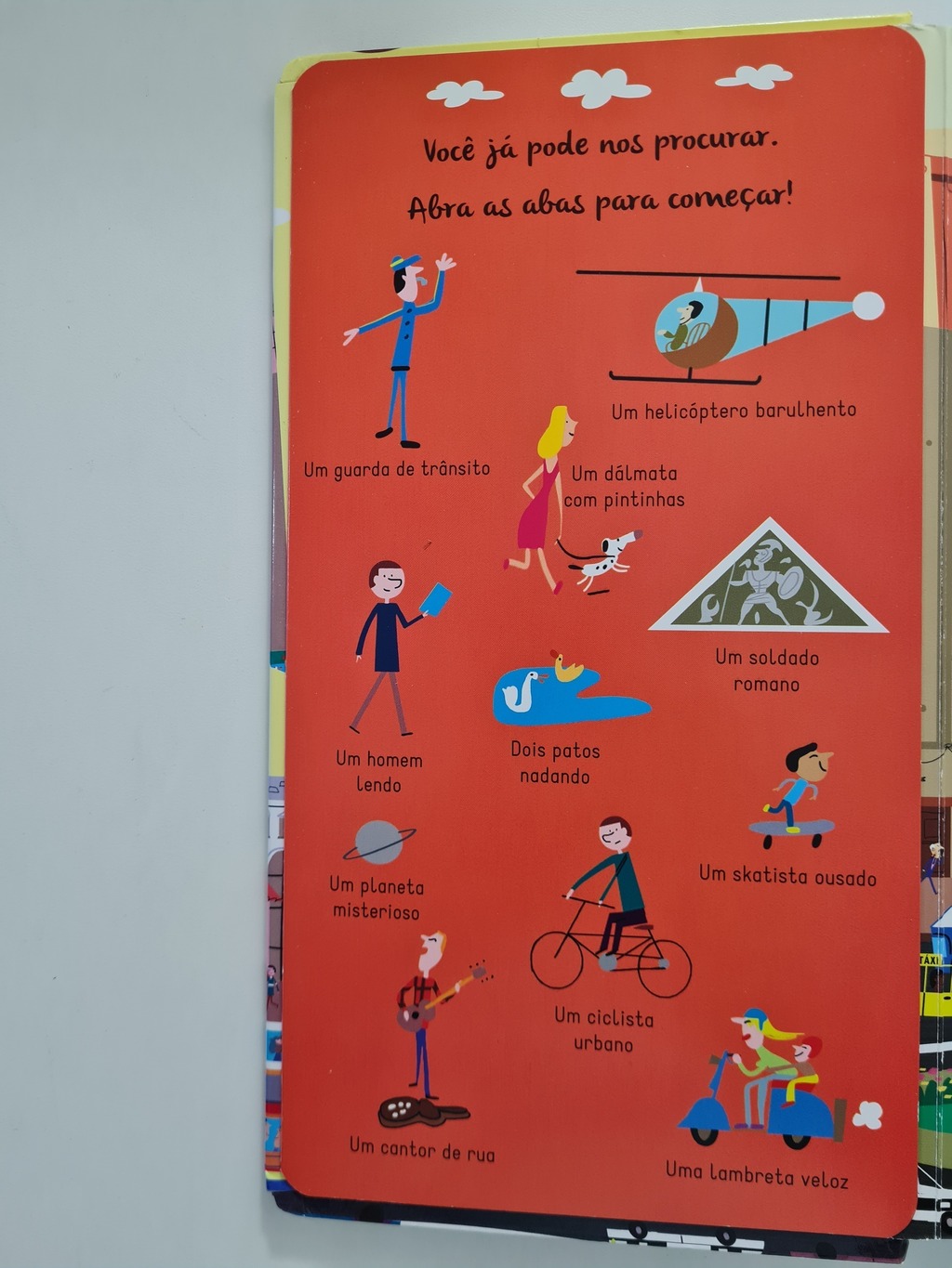Encontre centenas de personagens e objetos neste livro repleto de ilustrações impressionantes. As páginas se desdobram em cenários gigantes, revelando surpresas estranhas e marabilhosas na cidade, no campo, em alto-mar, na estação de trem, na construção e no aeroporto. Voce vai se divertir vencendo este desafio com figuras engraçadas e cheias de estilo!
