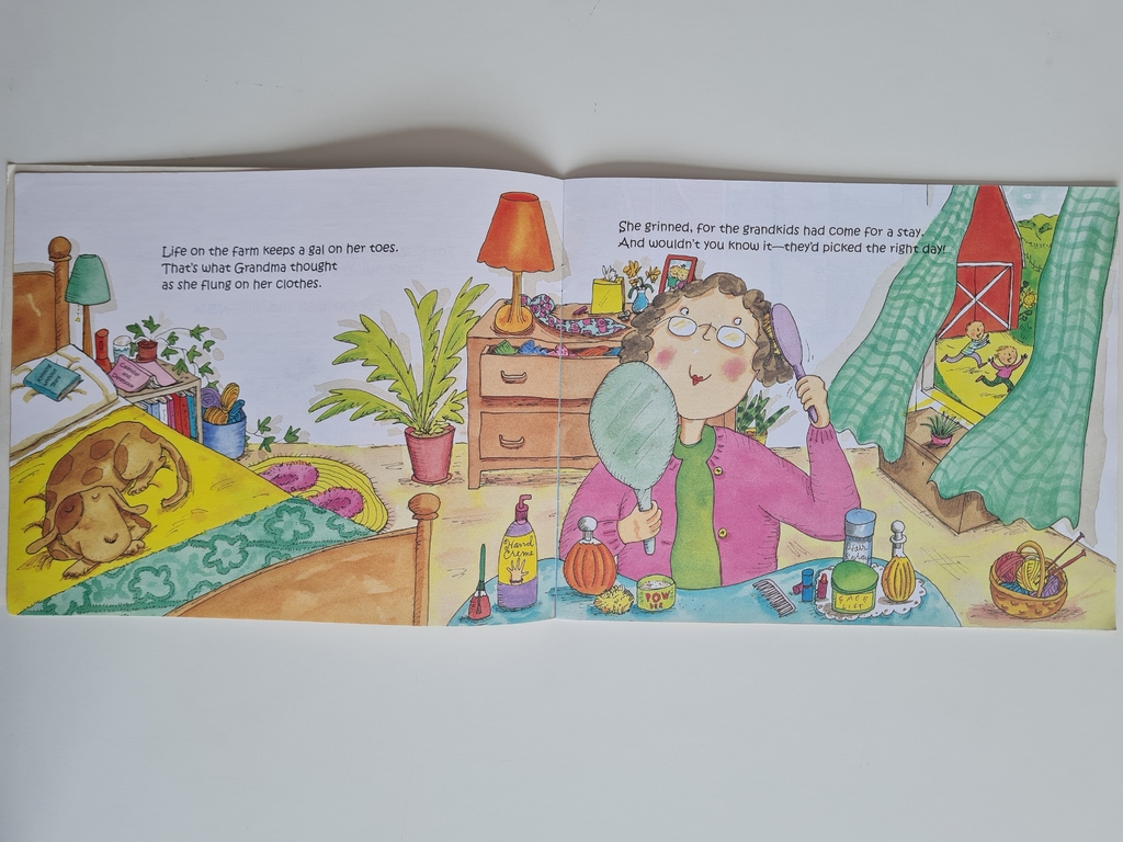 Wouldn’t you know it? The grandkids came to stay on just the right day – April Fools’ Day. Grandma knows that living on a farm, she must stay on her toes. Grandpa is ready for the day too. He ignores the grandkids as they keep running in telling him about animal mishaps on the farm. It’s not until Grandma comes downstairs and tells him “But honey, you’ll find, to your sorrow, it’s not April Fools’ Day today, but tomorrow!” In the end, it is Grandma who tricks him on April Fools’ Day.