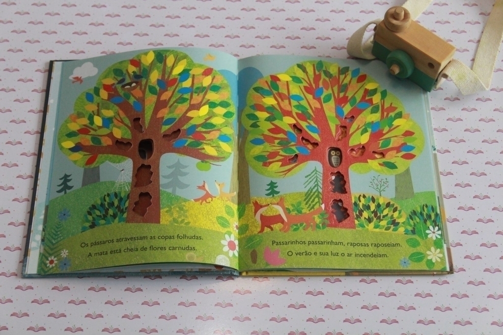 Com muita delicadeza, esse livro apresenta o ciclo das estações na natureza. As belas ilustrações mostram como a paisagem se transforma ao longo de um ano. Enquanto suas folhas brotam e as flores e frutos nascem, os filhotes de urso brincam, os esquilos pulam de lá para cá, as raposinhas farejam a relva, os pássaros saltitam e as abelhas dançam, sempre ao redor dessa majestosa árvore. O texto em versos acompanha essa transformação, mostrando aos pequenos leitores a força e o esplendor da natureza, sempre prestes a iniciar um novo ciclo.