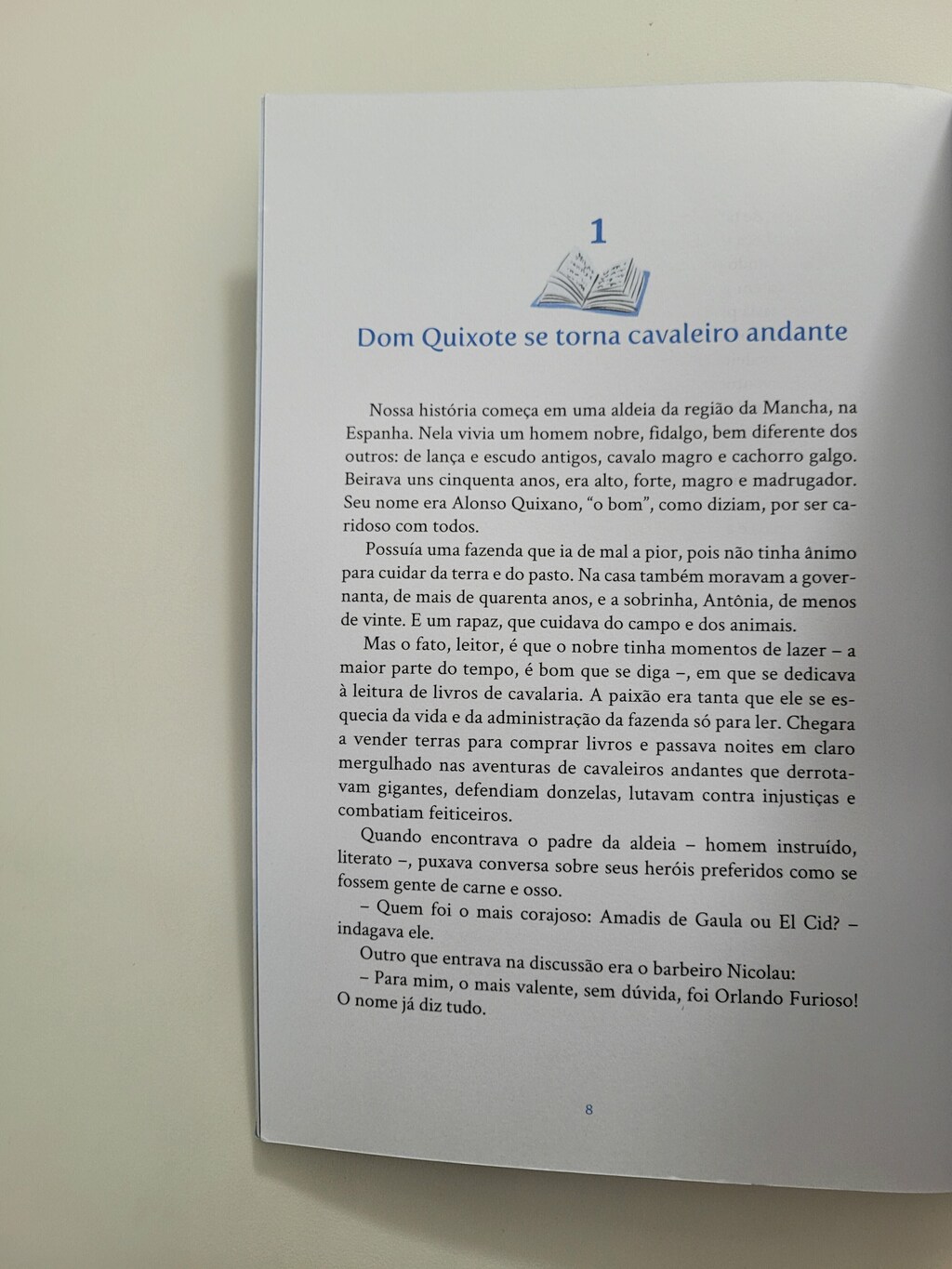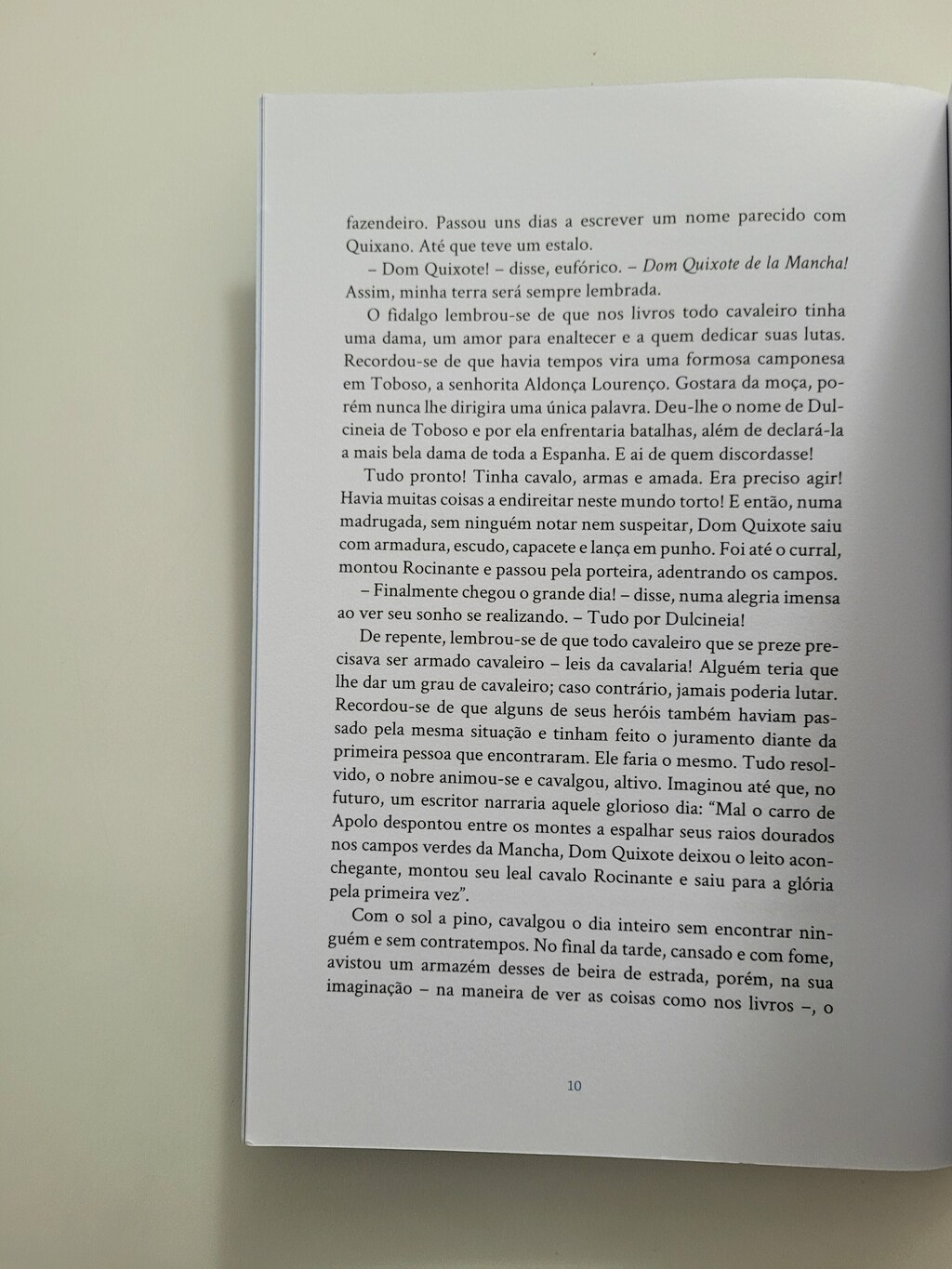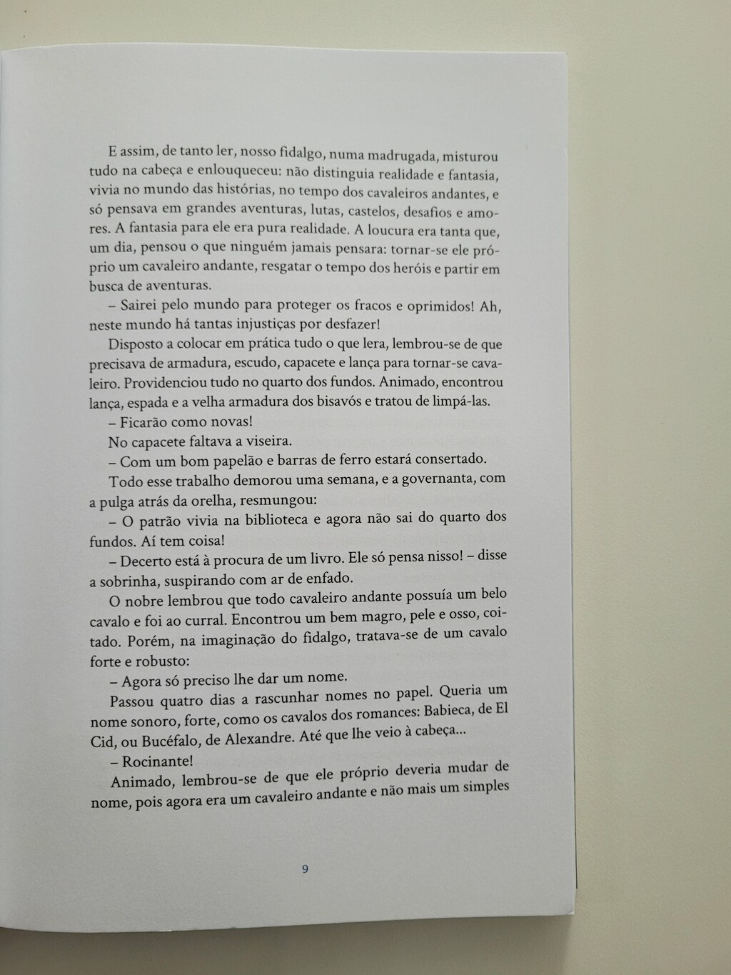 O fidalgo Alonso Quixano já tinha seus cinquenta anos, era alto, forte, magro e madrugador. Possuía uma fazenda em Mancha, na Espanha, mas a estância ia de mal a pior, porque o nobre não tinha nenhuma disposição para trabalhar nela. Tudo o que ele queria era ler novelas antigas de cavalaria, ocupação a que se dedicava sem parar com muita paixão. Um dia, imaginou que podia ser ele mesmo um cavaleiro andante: Sairei pelo mundo para proteger os fracos e oprimidos! Ah, nesse mundo há tantas injustiças por desfazer! Assim, Quixano se transforma em Dom Quixote e deixa sua casa em busca de aventuras, mesmo onde elas não existem. Luciana Sandroni adapta este que é considerado o primeiro romance moderno. Engraçado, irreverente e tocante, apresenta ao jovem leitor, com projeto gráfico e ilustrações de Ana Matsusaki, esse personagem icônico, quixotesco, que se tornou sinônimo dos que lutam por um ideal, mesmo que inalcançável.