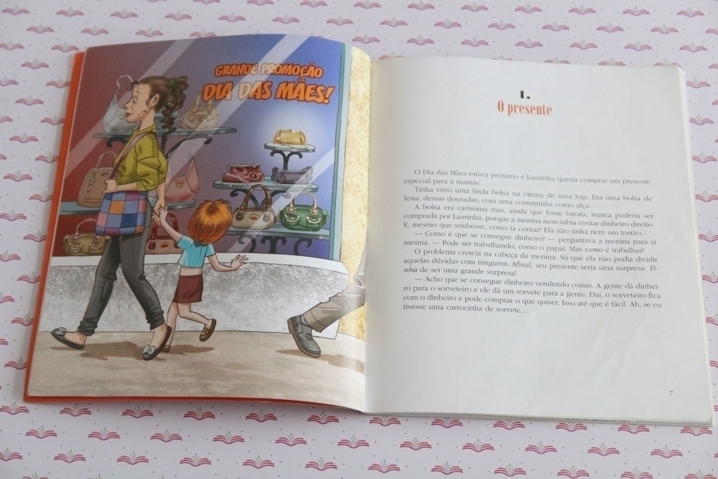 Neste livro, pela primeira vez escrevi alguma coisa que realmente aconteceu comigo. Esta Laurinha sou eu, com cinco anos de idade. Minha mãe era viúva e pobre e eu quis comprar uma bolsa dourada para ela com o meu trabalho, vendendo os desenhos que eu fazia. Guardei esses planos em segredo, mas é claro que meus parentes viram o tal cartazinho mal escrito pregado no muro externo da minha casa. A partir daquele momento, meus tios e tias traziam “encomendas de amigos” e o meu negócio foi um sucesso. A bolsa foi comprada para minha mãe e eu nunca mais pude dar a ninguém um presente melhor…