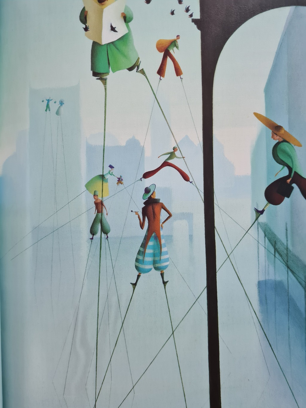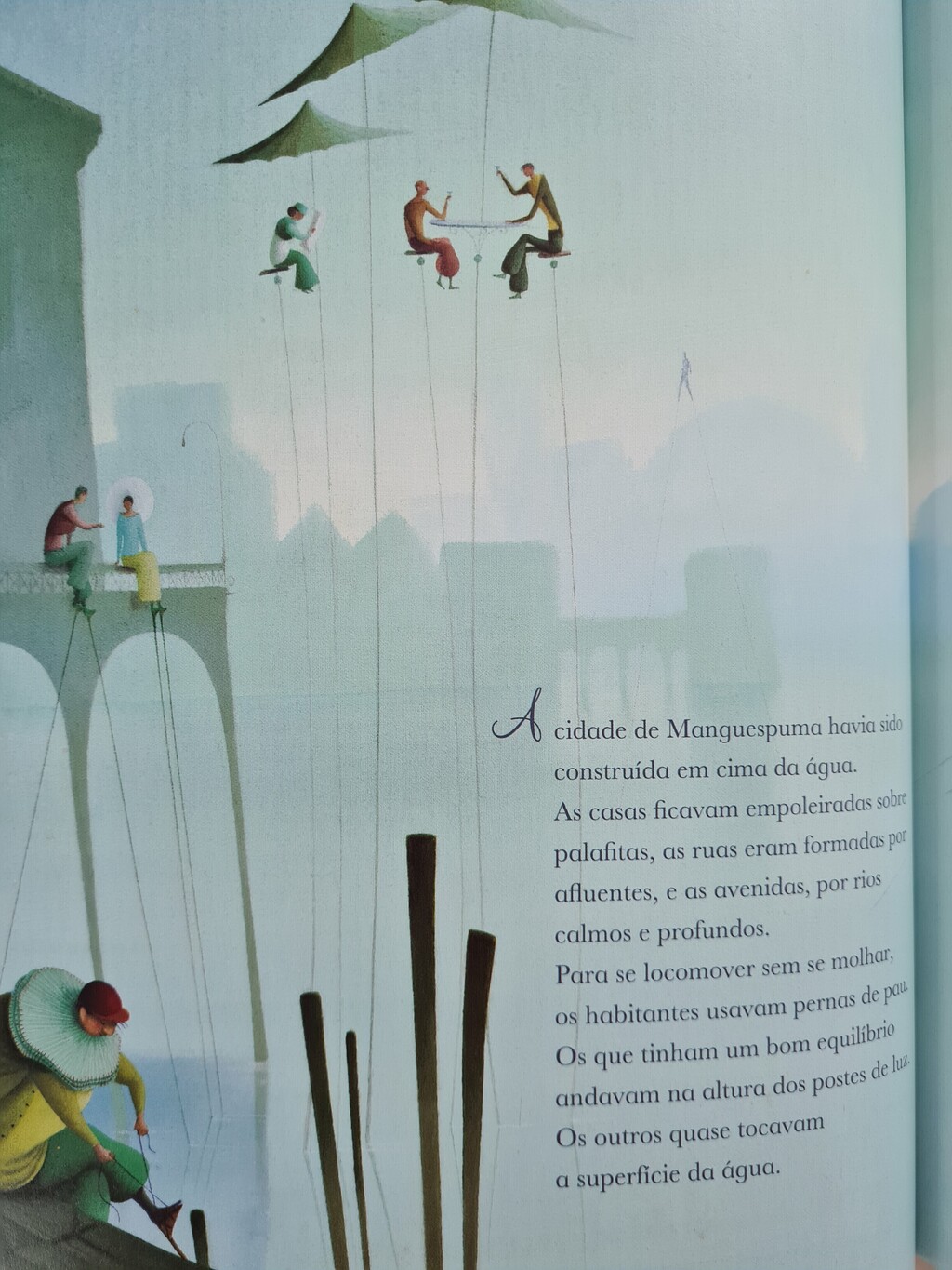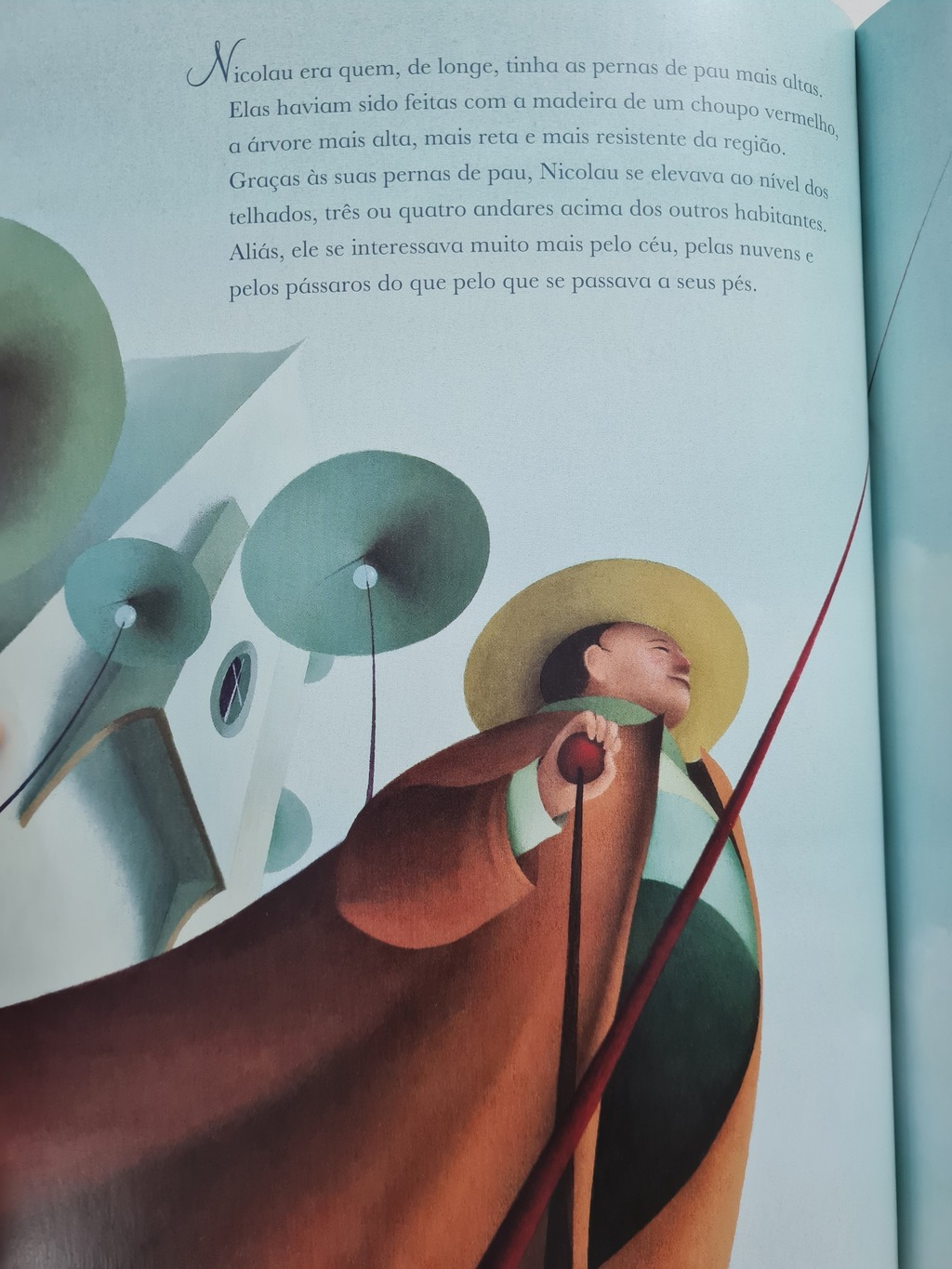 A cidade havia sido construída sobre a água, e seus habitantes usavam pernas de pau. Equipado com a mais comprida de todas, Nicolau andava acima da multidão, com a cabeça nas nuvens. Depois de todos os preparativos, o dia da Grande Festa havia chegado. Bem que poderiam precisar da ajuda dele…