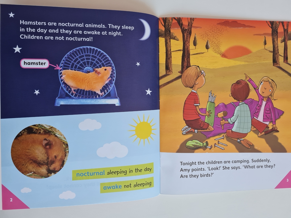 Amy and Jack visit their cousin, Max, in the countryside. They can’t sleep – and meet the animals that come out at night. This reading series features carefully crafted language that fits with English language learners’ needs.