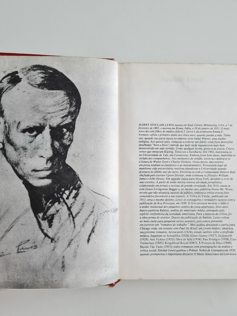 Sinclair Lewis carrega um título importante para os Estados Unidos: foi o primeiro escritor norte-americano a ganhar um Prêmio Nobel de Literatura. Nesta obra intitulada Babbitt, de 1922, ele debruça seu olhar sobre a sociedade americana daquela época, fazendo uma crítica a seus costumes e seu modo de pensar. Babbitt é George Babbitt, o personagem principal do livro, que faz parte da classe média conservadora.