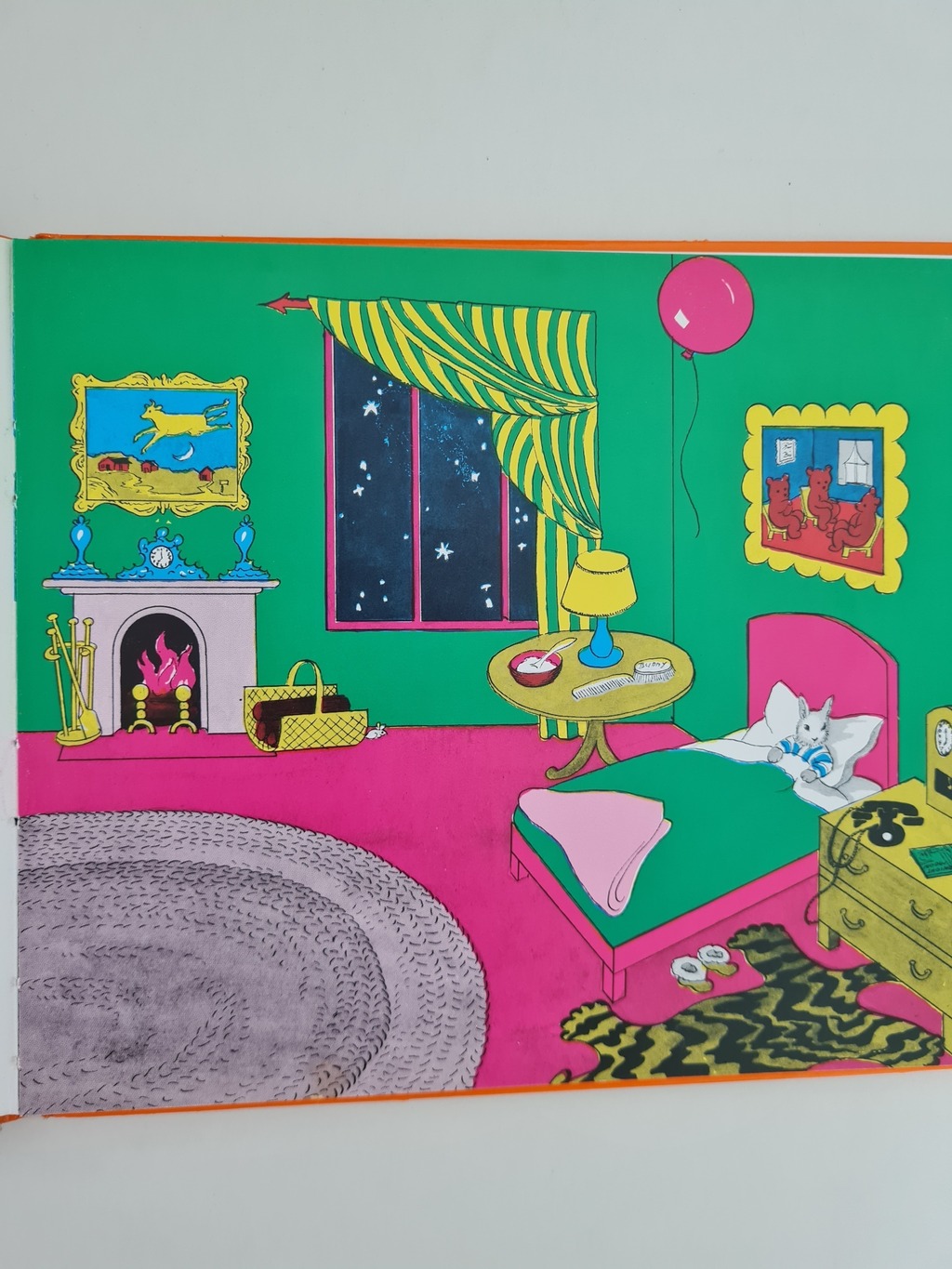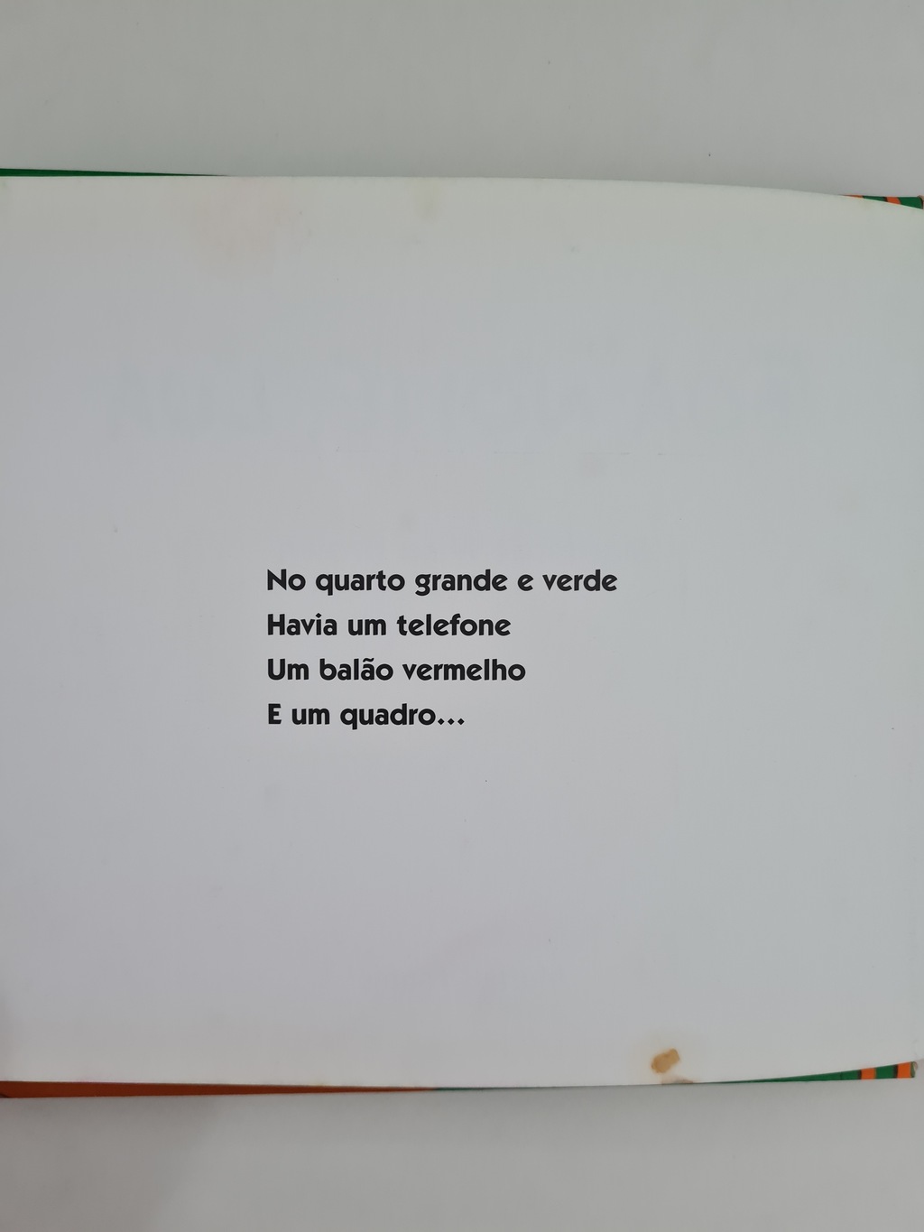 Num grande quarto verde, um coelhinho está enfiado debaixo das cobertas. “Boa noite, quarto. Boa noite, lua.” E ele diz boa noite para todas as coisas familiares do quarto aconchegante.
