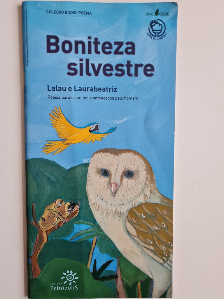 Neste livro liricamente engajado, Lalau faz poesia para os animais que o homem ameaça com sua cobiça. São onze bichos-poemas lindamente ilustrados por Laurabeatriz, numa verdadeira reverência à biodiversidade brasileira. A Coleção Bicho-poema é a primeira coleção brasileira de livros infanto-juvenis verdes e livres de carbono (carbon free). Além disso, a coleção inclui um divertido jogo de cartas com as imagens dos animais: o Jogo do Bicho-poema.