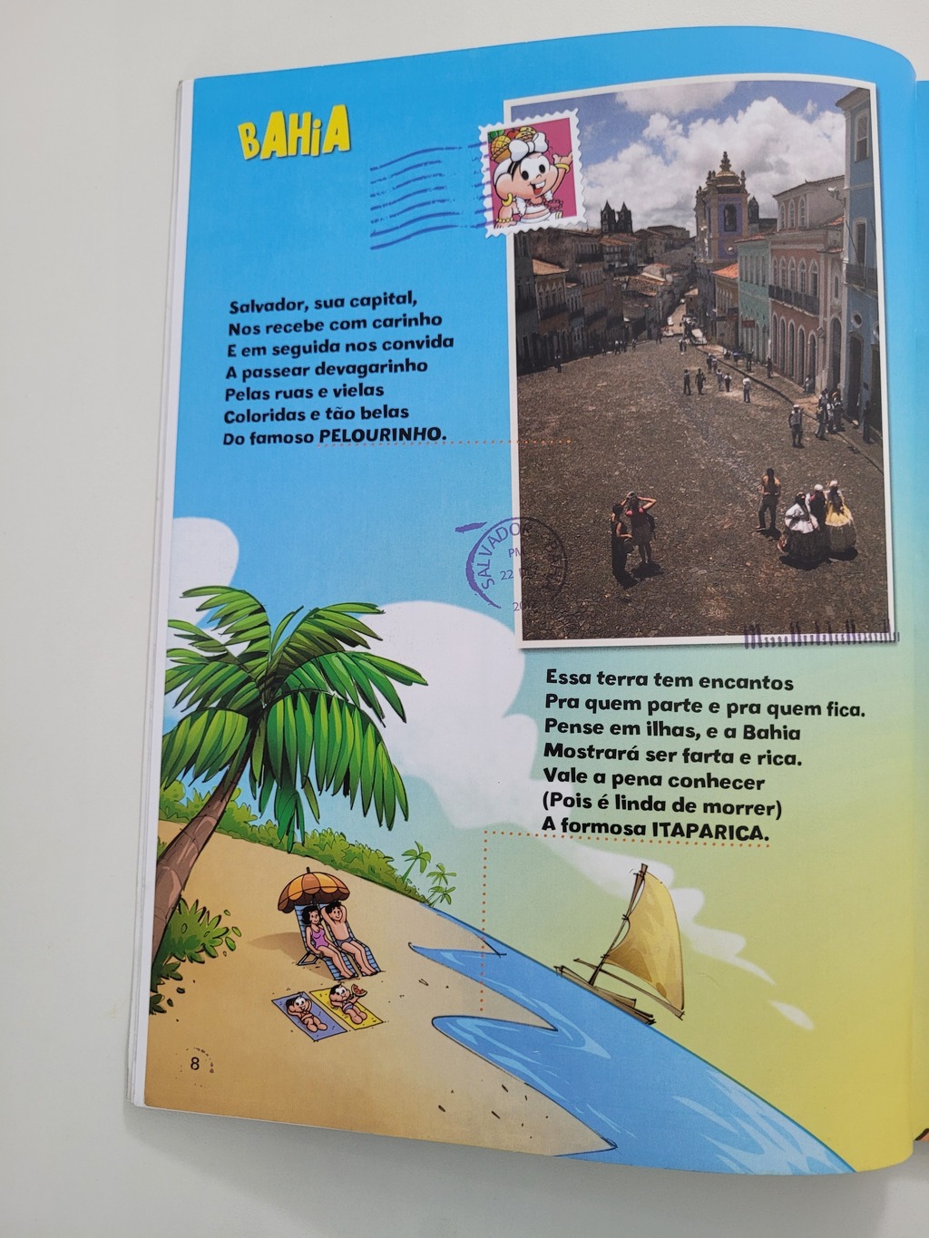 Após o sucesso do livro A Peleja do Violeiro Chico Bento com o Rabequeiro Zé Lelé, também publicado pela Melhoramentos, Maurico de Sousa e Fábio Sombra estão juntos em outra afinada parceria: O Brasil no Papel em Poesia de Cordel. Nomeada em 2008 Embaixadora do Turismo no Brasil, Monica levou a sério sua missão: em companhia de seus amigos, viajou por todos os estados brasileiros e foi anotando e fotografando o que via. Eis aqui o resultado: uma viagem pela diversidade e pelas belezas do Brasil, narrada em versos de cordel e com lindas fotos e ilustrações.