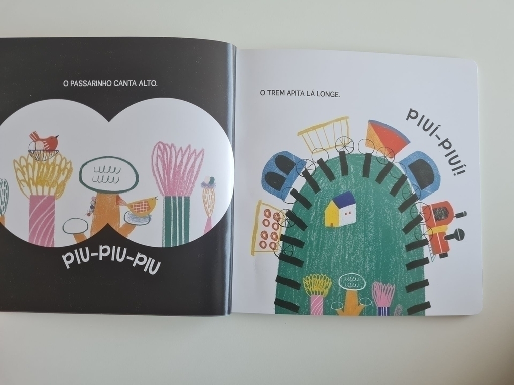 Onomatopeias: é por onde a fala começa e é quando a linguagem se torna mais divertida. Na primeira infância, as onomatopeias são puro encanto. Primeiro contato com o mundo, elas são uma tentativa de reproduzir toda a riqueza de sons e ruídos ao nosso redor. E se, então, brincássemos com as onomatopeias? E se fosse permitido misturá-las, combiná-las, fazendo delas um brincar infinito? Brincatopeia é esse convite: brincar com a linguagem a partir do caminho irresistível da imaginação!