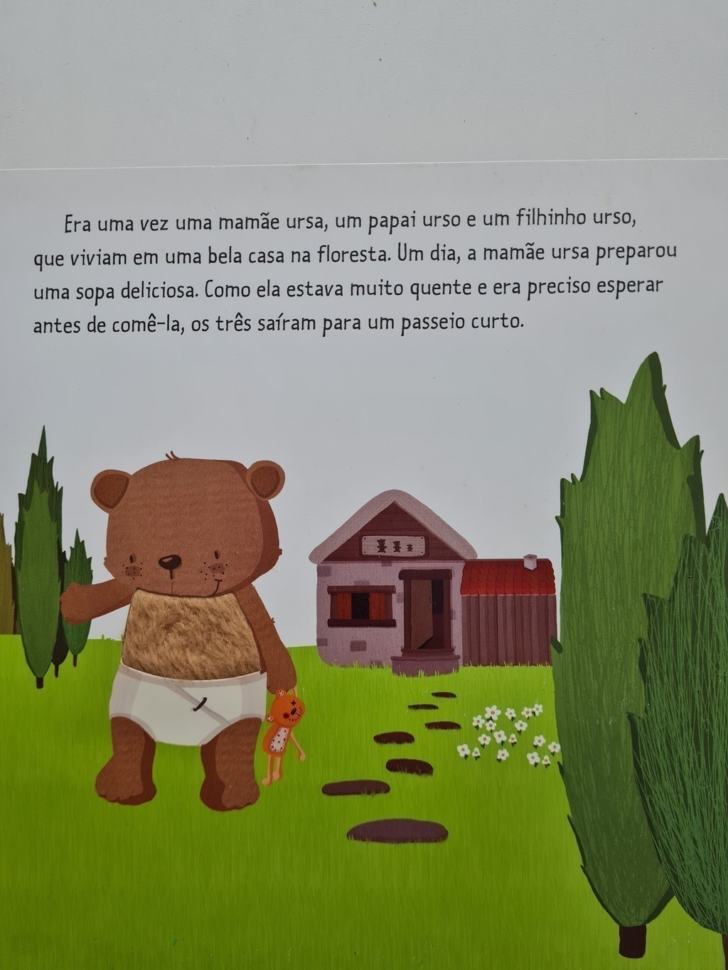 Era uma vez uma mamãe ursa, um papai urso e um filhinho urso, que viviam em uma bela casa na floresta…