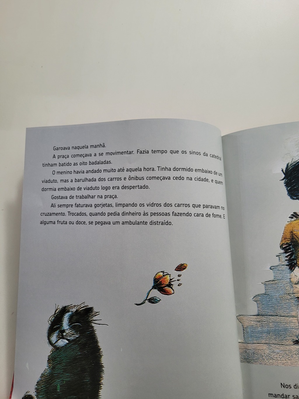 Dois mundos se entrelaçam com a ajuda do vento o mundo da princesa que se apaixona por um rapaz comum e o do menino que vive na rua e só quer uns trocados. Ao ouvir a história do vento que movimenta as pás dos moinhos e leva recados e perfumes, algo muda dentro do menino. E ele descobre que pode sonhar.Um menino de rua pede um trocado, mas ganha uma maçã e uma boa história. Vai-se encantando com ela, deixando-se levar pelo amor de uma princesa e um rapaz comum. O vento está presente nos dois cenários no reino de contos de fadas ele leva recados e perfumes na cidade grande vela o sono dos meninos sob o viaduto. No final o homem que deu a maçã ao menino lhe entrega o livro, e ele, que nem sabe ler direito, guarda e protege o objeto como um tesouro.