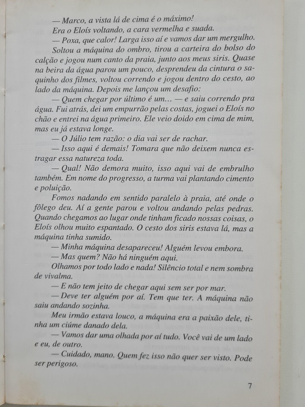 De férias na praia, com seus irmãos Isabel e Marco, Eloís não para de fotografar tudo o que lhe chama a atenção. Mas, em uma das fotos, no fundo do cenário, um detalhe inesperado, alguma coisa meio difícil de distinguir, envolve os tres com uma quadrilha cruel que não hesitaria um minuto em fazer os tres intrometidos desaparecem da face da Terra! Esta aventura já se tornou um clássico brasileiro da literatura juvenil.