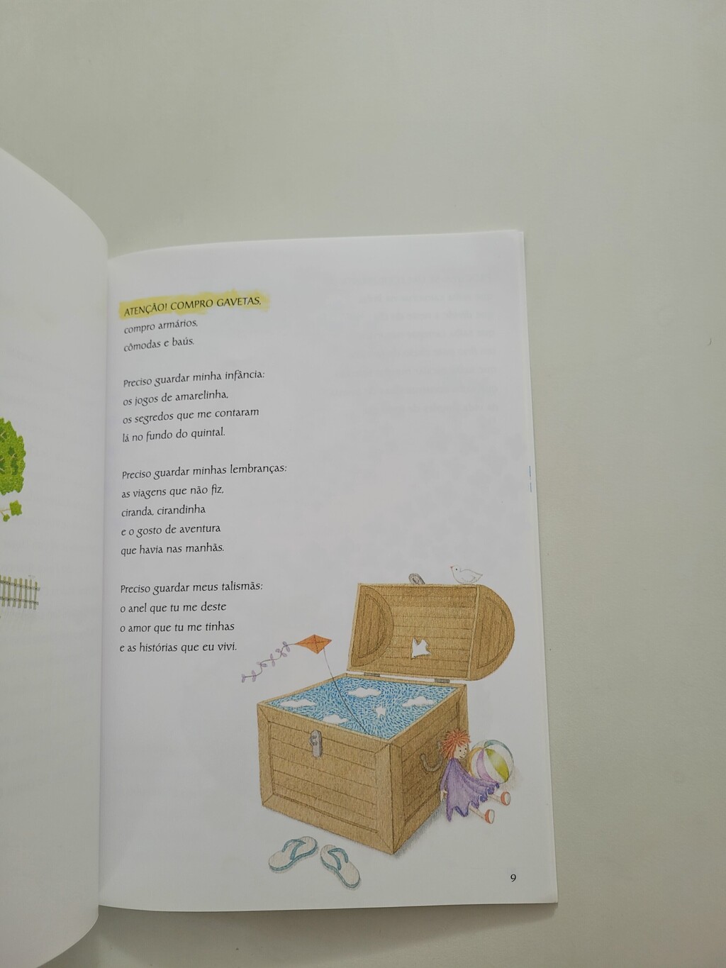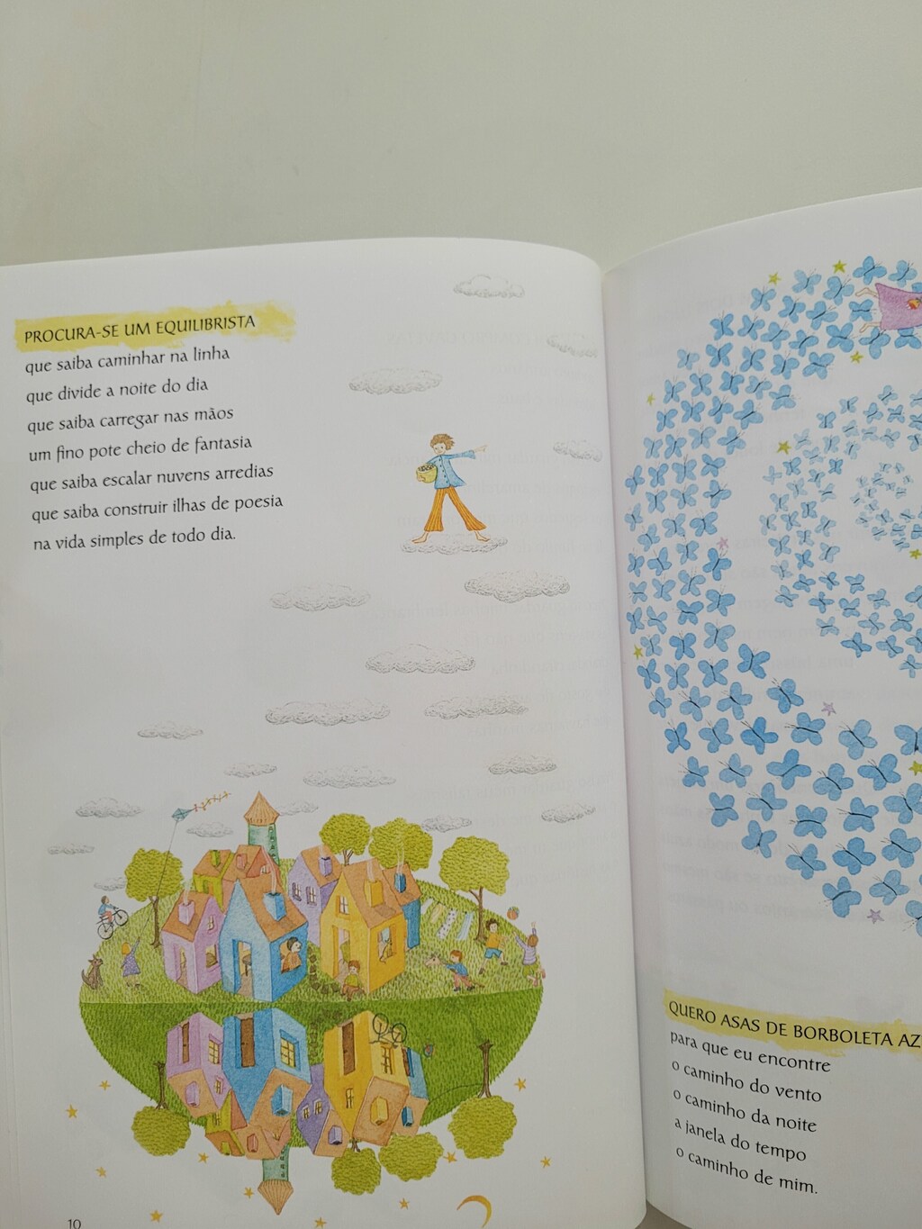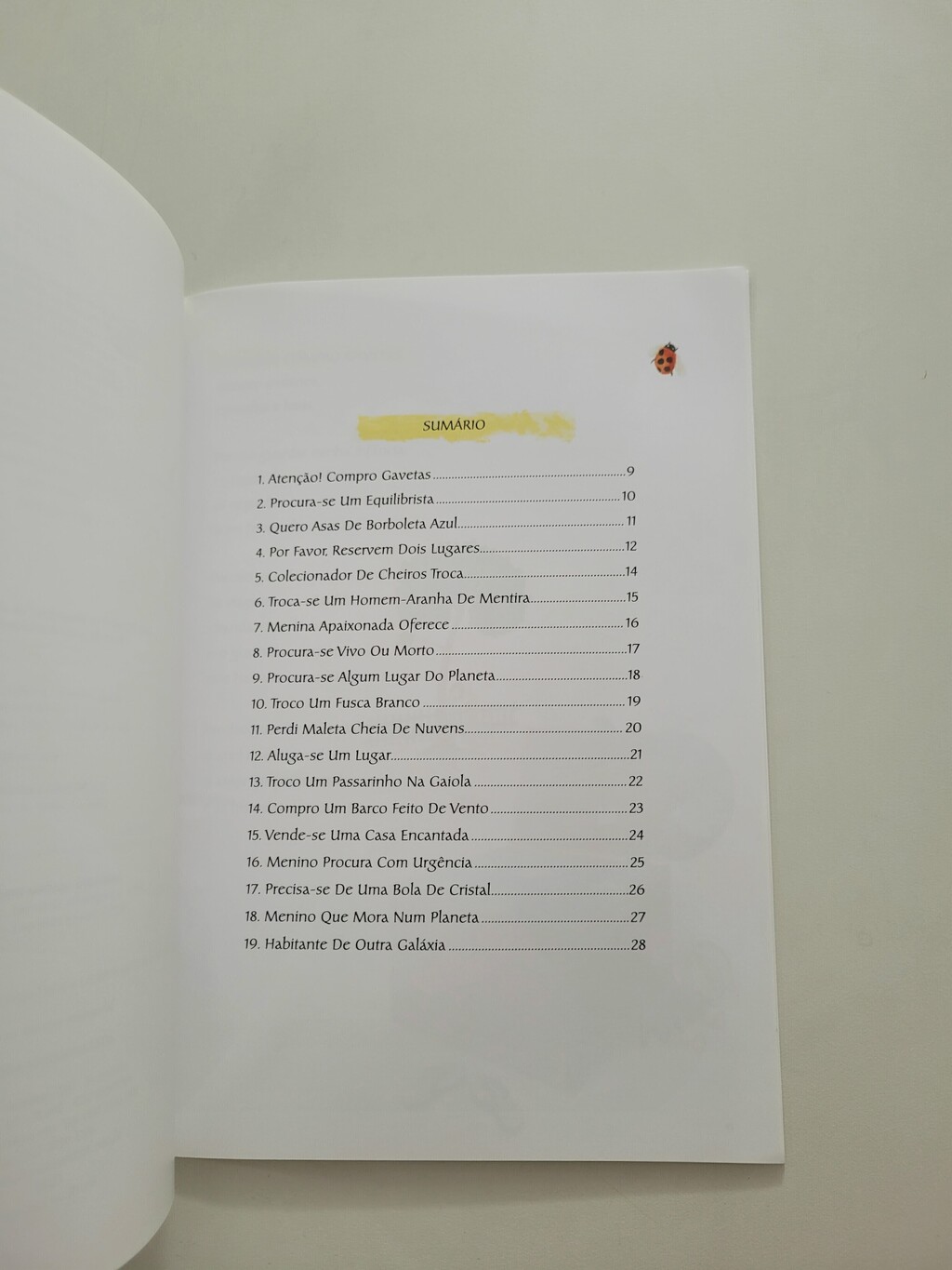 Compram-se gavetas, cômodas e baús para guardar jogos de amarelinhas, viagens não feitas, amores antigos. Procura-se um equilibrista que saiba criar ilhas de poesia na vida simples de todos os dias. Troca-se cheiro de cimento por cheiro de orvalho, cheiro de gasolina por cheiro de chuva. Troca-se um homem-aranha de mentira por uma aranha de verdade, um fusca por um cavalo branco, um pássaro na gaiola por uma gaiola vazia; procura-se um sapo de estimação, uma maleta perdida com amores embrulhados em neblina, um vale azul para morar. Procuram-se brechas de lirismo em um mundo tantas vezes automático e mecanizado; procuram-se possibilidades de utopia.