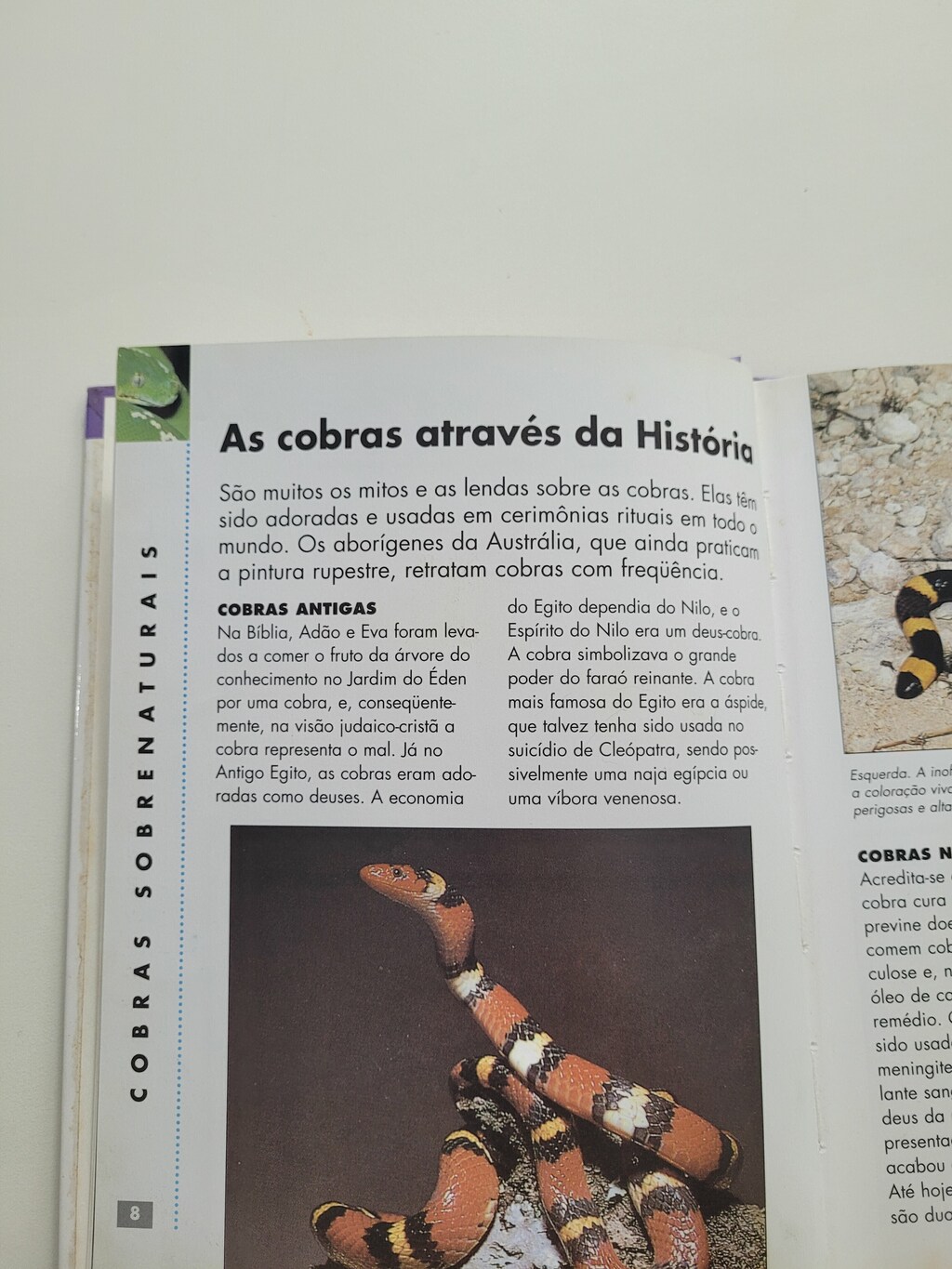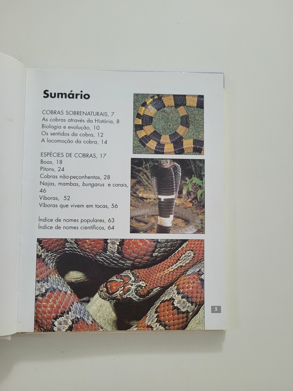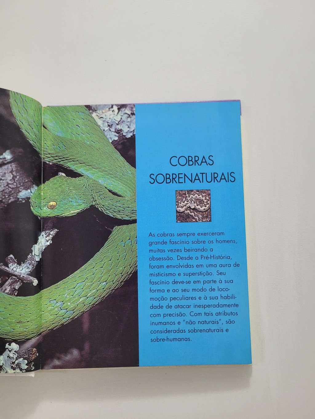 As cobras sempre exerceram grande fascínio sobre os homens. Este livro relata alguns mitos e lendas sobre elas, seu aproveitamento pela medicina, suas formas de locomoção, além de identificar 88 espécies do mundo todo.