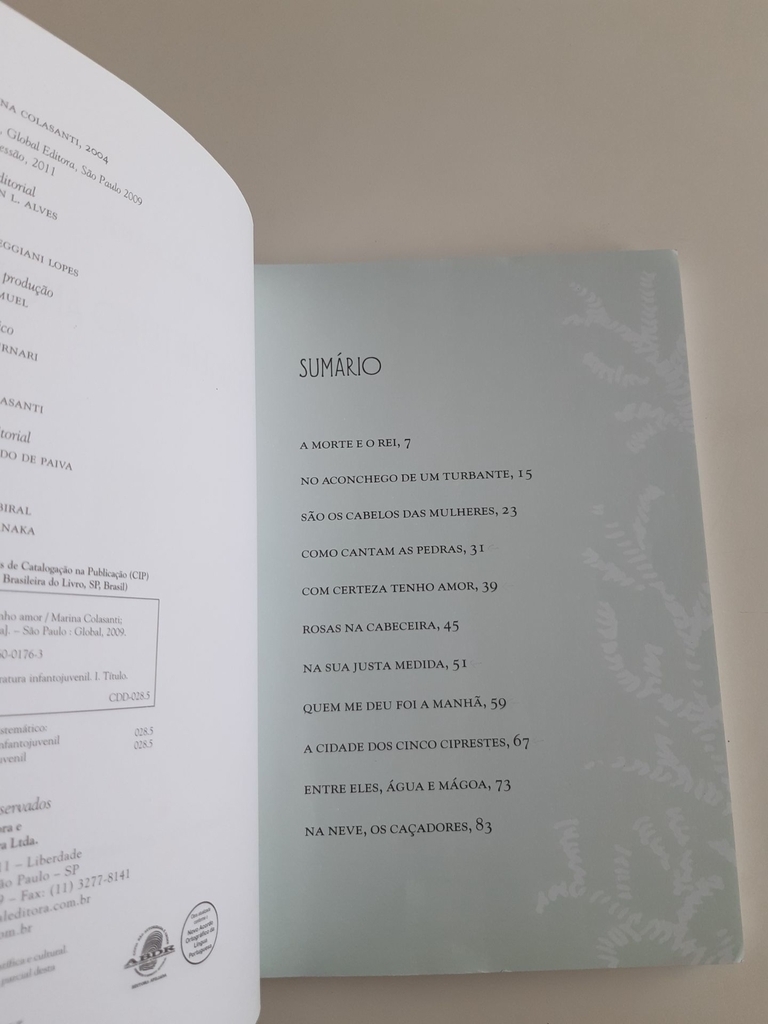 Este é um livro de 11 narrativas curtas em que após transpormos as páginas azuis, que antecedem cada uma delas, nos deparamos com figuras tão conhecidas do nosso imaginário como reis, príncipes, saltimbancos, animais protetores, mulheres de uma aldeia, moças resguardadas, a morte, um guerreiro, um bobo da corte todas reinventadas pela imaginação e ilustração poéticas e delicadas de Marina Colasanti. São personagens que se transformam com o desenrolar da trama sutil em que lidam com a impossibilidade de fugir da morte, o respeito aos animais que os encontram, o cultivo do amor distante, o desejo da beleza, a capacidade feminina de dançar com a natureza, a solidão de um guerreiro, a busca de um tesouro desconhecido. Como uma música que continua após o seu fim, muitas das histórias terminam no ponto em que a imaginação do leitor pode continuar inventando os destinos. Resenha Especializada – A Taba