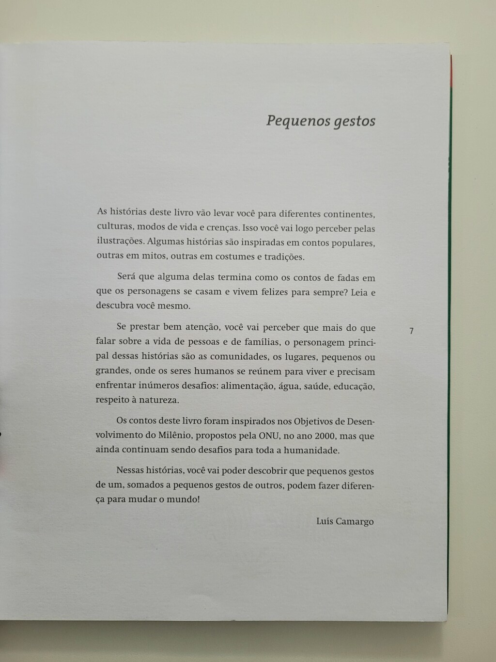 As histórias deste livro vão levar voce para diferentes continentes, culturas, modos de vida e crenças. Elas foram inspiradas nos Objetivos de Desenvolvimento de Milenio, propostos pela ONU, e que ainda continuam sendo desafios para toda a humanidade. Leia, comova-se, divirta-se e também reflita sobre cada uma destas histórias!