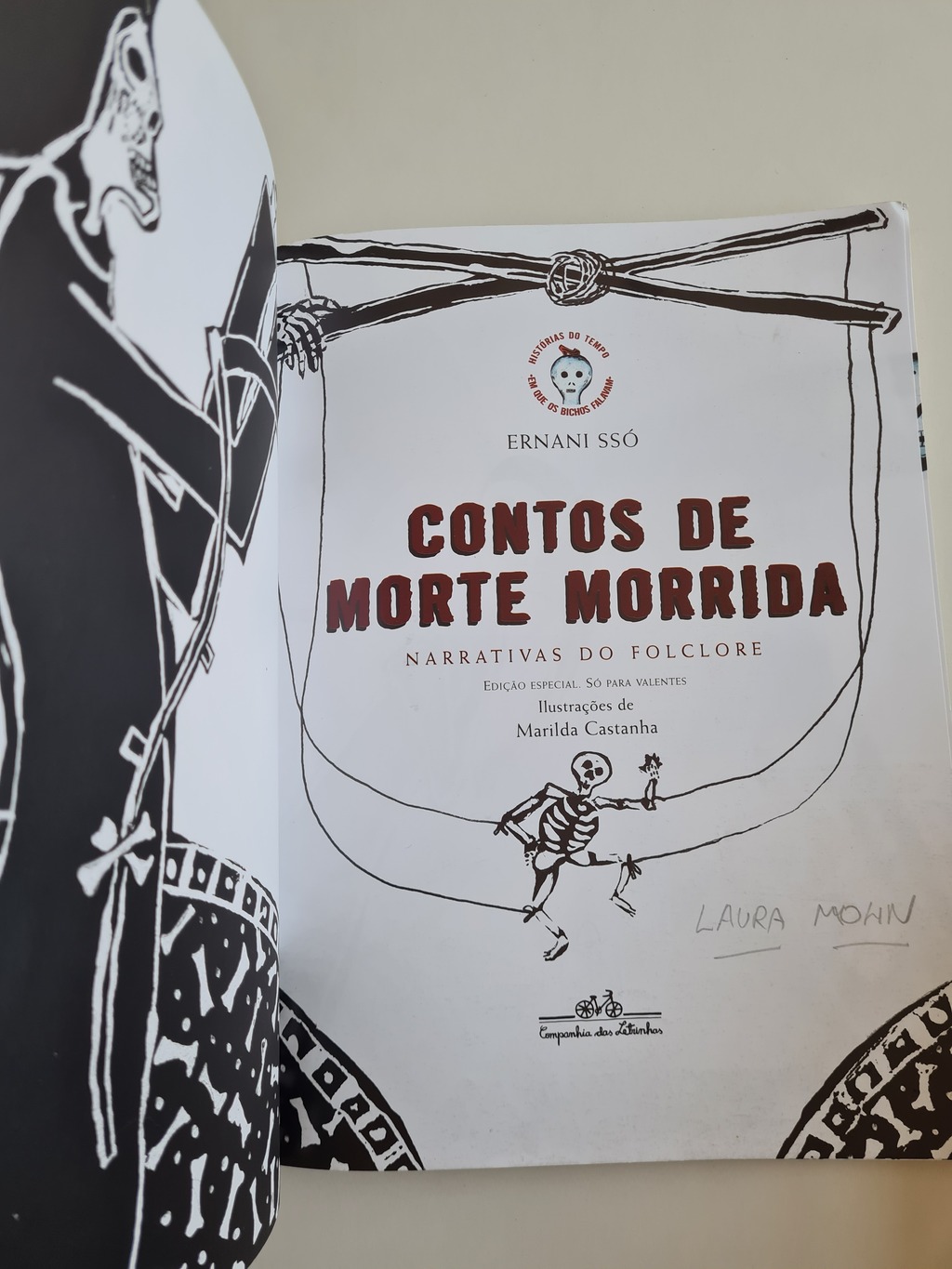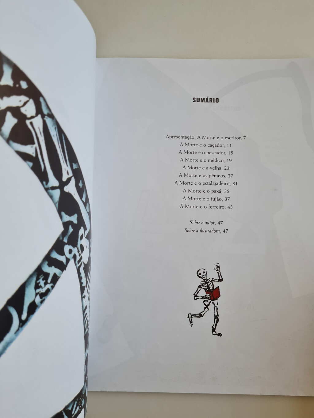 Há muito tempo, há algumas várias horas, quando os bichos falavam, um escritor começou um livro muito difícil. Primeiro, porque era sobre um assunto delicado. Depois, porque, ao se sentar em frente da escrivaninha, viu a sombra de alguém encapuzado, segurando uma gadanha, se estender sobre o monitor do micro e a parede… Com o humor seco e a dignidade que o tema merece, e com a leveza e a cadência da narrativa oral, Ernani Ssó conta nove histórias em que o protagonista é a Morte. Não aquela simplesmente má – a que dá aquelas gargalhadas estrondosas -, mas a Morte em seus vários disfarces, encenando a grande personagem que é.