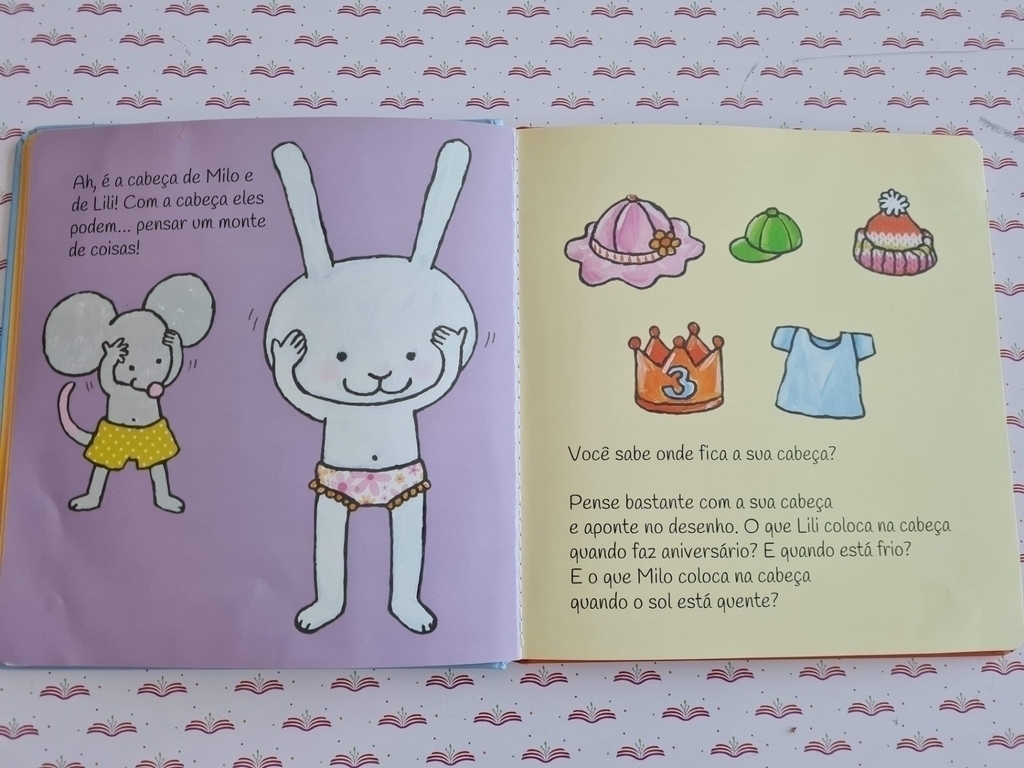 Lili e Milo estão conhecendo o próprio corpo. Da cabeça aos pés! Com a cabeça, Lili e Milo podem pensar muitas coisas. Com as pernas podem correr muito rápido. E sabe o que eles podem fazer com as bocas? Falar, rir, gritar, comer sussurrar e… dar muitos beijinhos! Uma história, tematizada no dia a dia dos pequenos, em que se aprende tudo sobre as partes do corpo. Indicado para crianças a partir de dois anos.