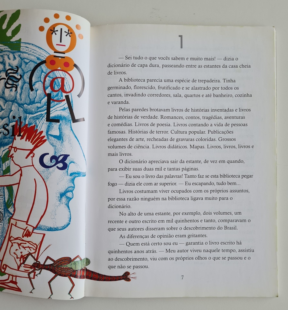 Para provar que é o livro mais importante de todos, um dicionário sai para conhecer o mundo. Nas suas andanças, aprende que a vida, a sabedoria, o amor, a esperança e a liberdade são muito maiores do que a simples definição das palavras e contêm significados tão grandes que, às vezes, não cabem nem mesmo em um dicionário. Brincando com a linguagem, Ricardo Azevedo faz, neste livro, uma importante reflexão sobre o real significado das palavras.
