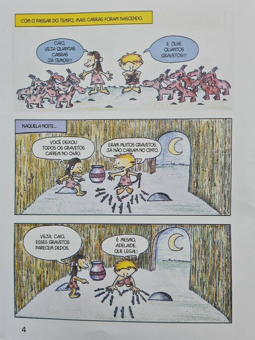 Caio e Adelaide viviam num tempo em que os números ainda não tinham sido inventados, mas descobriram um jeito de contar as cabras de seu rebanho. Leia a história desses pequenos pastores criados por Luiza Faraco Ramos e descubra como eles conseguiram construir a noção da dezena.