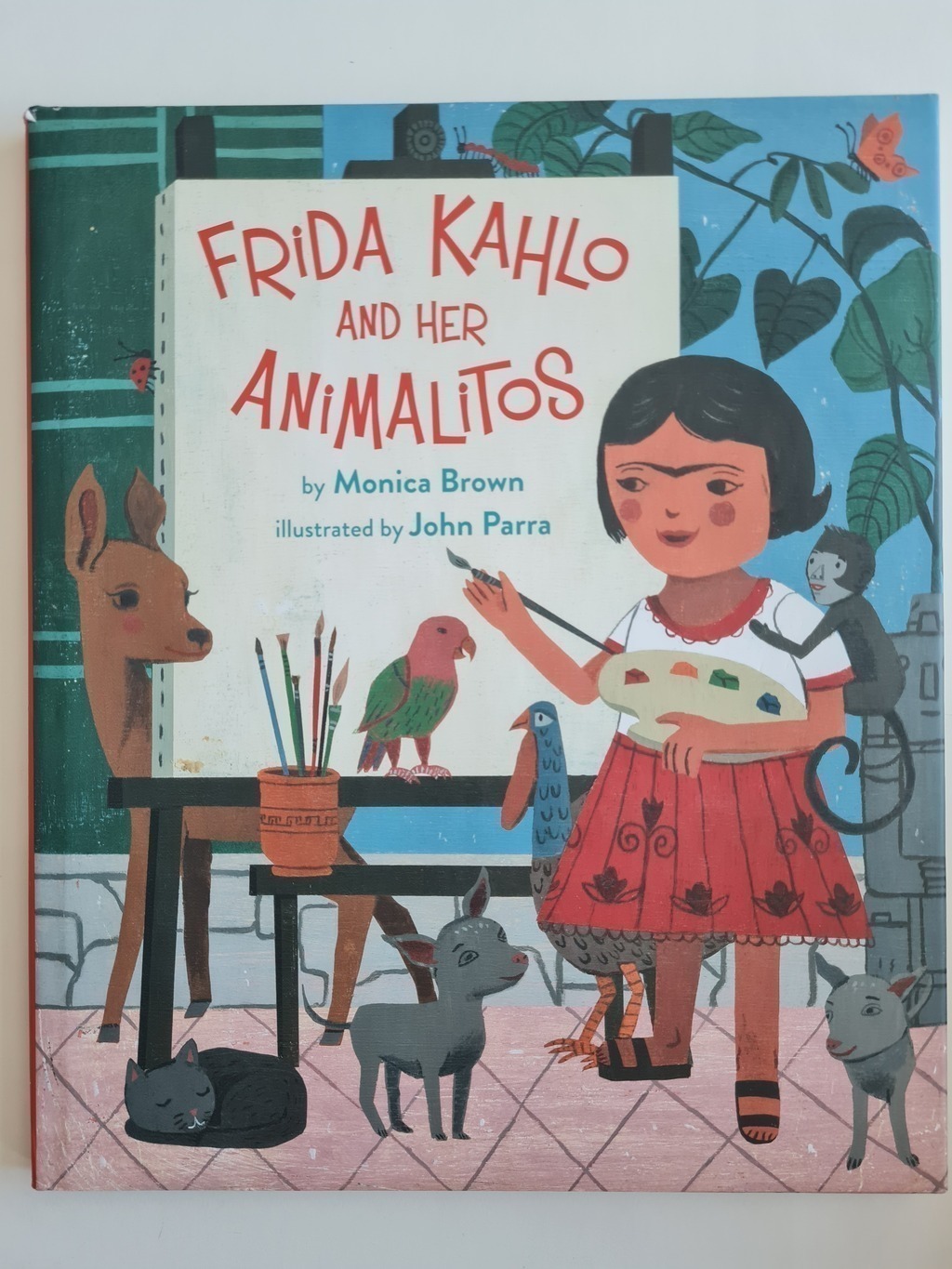 Frida Kahlo and Her Animalitos, written by Monica Brown and illustrated by John Parra, is based on the life of one of the world’s most influential painters, Frida Kahlo, and the animals that inspired her art and life. The fascinating Mexican artist Frida Kahlo is remembered for her self-portraits, her dramatic works featuring bold and vibrant colors. Her work brought attention to Mexican and indigenous culture and she is also renowned for her works celebrating the female form. Brown’s story recounts Frida’s beloved pets–two monkeys, a parrot, three dogs, two turkeys, an eagle, a black cat, and a fawn–and playfully considers how Frida embodied many wonderful characteristics of each animal.