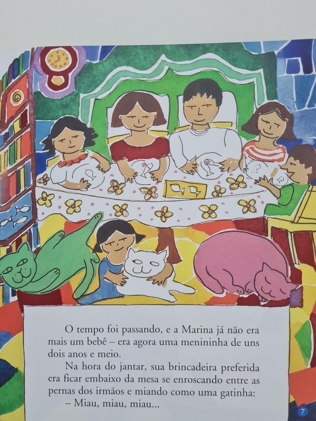 Marina era uma garotinha que não queria saber de falar. Miava o tempo todo e não saía de baixo da mesa, como se fosse uma gata. Preocupada, sua mãe resolveu consultar o doutor Setúbal.