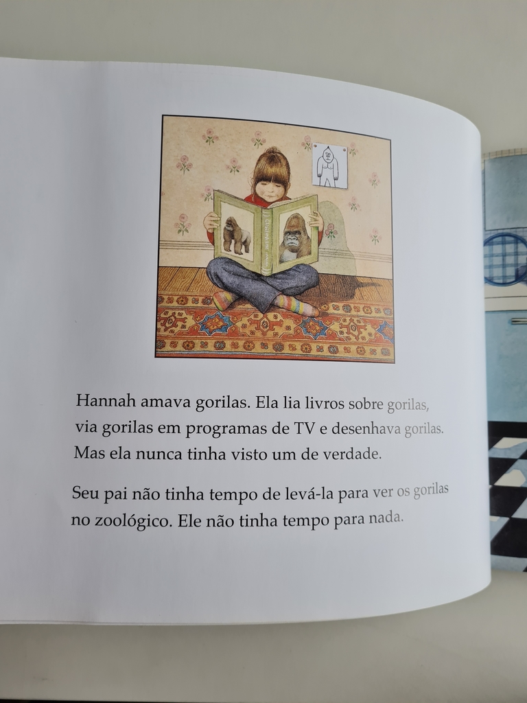 A clássica história de uma menina solitária, um gorila bacana e seu incrível passeio à noite, escrita por um ganhador do Prêmio Hans Christian Andersen. Hannah amava gorilas, mas ela nunca tinha visto um de verdade, pois seu pai não tinha tempo de levá-la ao zoológico. Ele não tinha tempo para nada. Então ela pediu um gorila de aniversário, mas seu pai a presenteou com uma versão de brinquedo, o que a deixa frustrada. Eis que algo extraordinário acontece: o brinquedo se transforma num gorila de verdade. Fascinado por gorilas, um dos mais cultuados autores-ilustradores de sua geração, Anthony Browne conta uma história delicada e forte, de um pai que se aproxima do universo da filha.