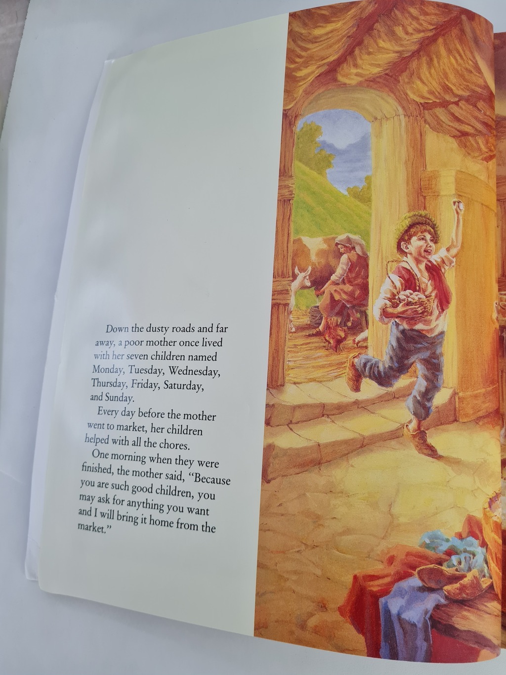 Seven children named Monday, Tuesday, Wednesday, Thursday, Friday, Saturday, and Sunday;a witch who intrudes on the peace of their cottage; and a spell only the childrens mother can break- these dramatic elements form a story that is both contemporary and timeless. Inspired by a sixteenth-century game still played by childrne today, Heckedy Peg is an enchanting story, perfect for storytime, bedtime, anytime.