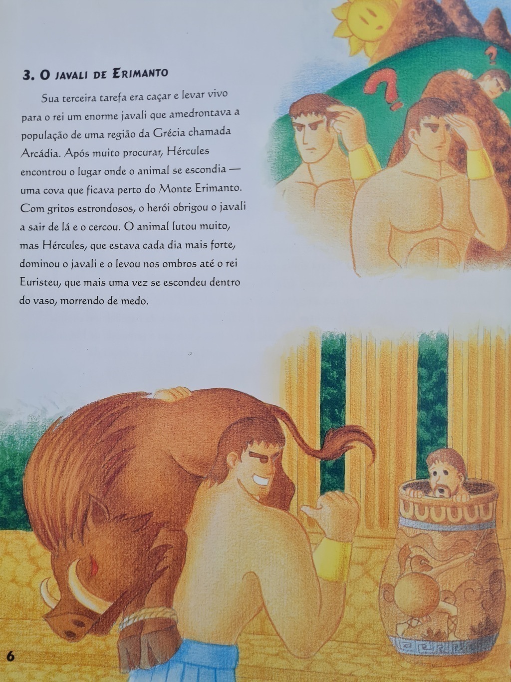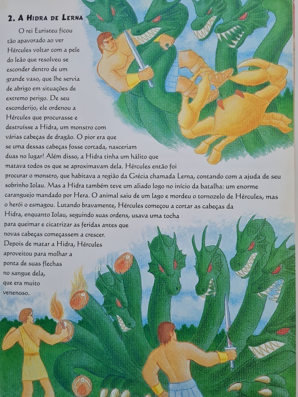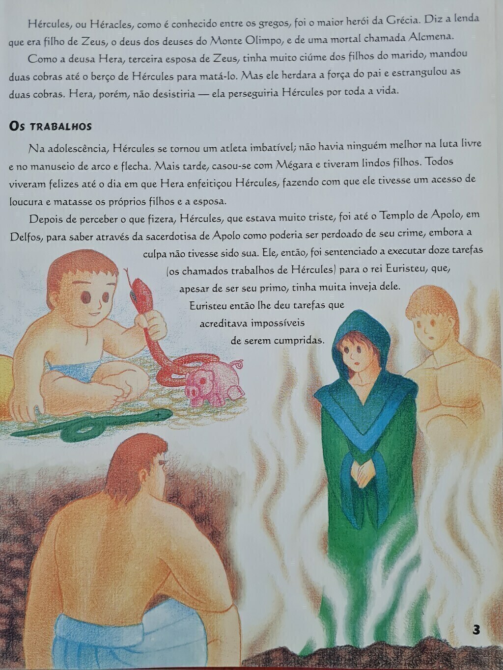 Voce vai saber como Hércules venceu a poderosa Hidra de Lerna, um monstro terrível com varias cabeças. Vai conhecer o temido leão de Neméia e descobrir como Hércules conseguiu derrotá-lo. Voce ainda vai saber como o herói conseguiu destruir as aves do lago Estinfalo, com seus bicos e penas de ferro, além de muitas outras incríveis aventuras.
