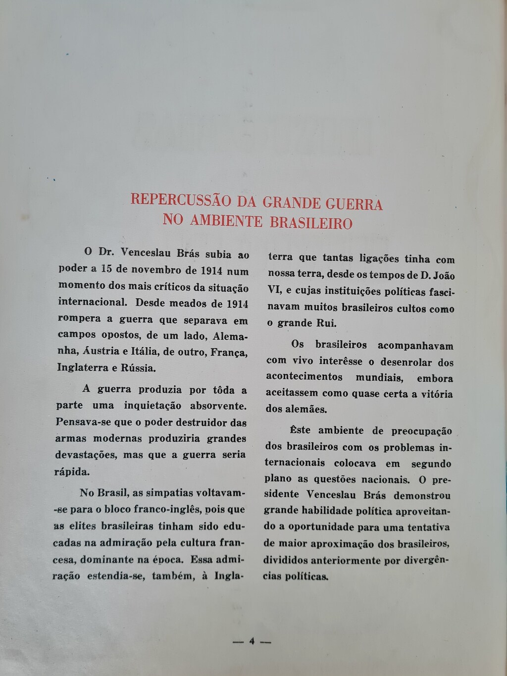 Da Primeira Guerra Mundial até a Queda do Govêrno Washington Luiz