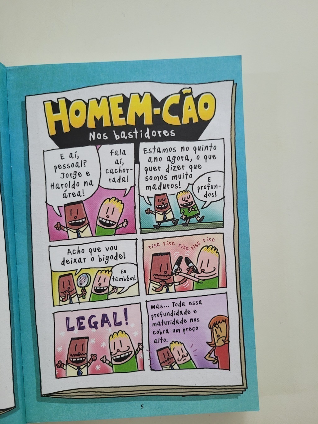 Esse é o quinto volume da série Homem-Cão, escrita e ilustrada pelo mesmo criador do Capitão Cueca. Na aventura da vez, inspirada no clássico da literatura O senhor das moscas, nosso super-herói favorito vai descobrir detalhes da infância de Pepê, o gato mais malvado do mundo. Desde então, nosso herói encontrou vários cãopanheiros: o Chefe, a poodle Zuzu, o robô Formigão e Pepezinho, um adorável gatinho. Quando um novo grupo de caras malvados aparece na cidade, o Homem-Cão entra em ação ? e ele não está sozinho! Ao lado de Pepezinho e do Formigão, nosso Cãovaleiro das Trevas faz parte do grupo Superamigos, heróis sempre prontos para salvar todo mundo da cidade. Desta vez eles vão precisar unir forças a um aliado inesperado: o arqui-inimigo Pepê, o gato mais malvado do mundo. Mas será que ele é tão mau assim? Descubra a origem da vilania de Pepê e se ele finalmente vai deixar a amizade vencer pelo menos uma vez. Autor da Série Capitão Cueca.