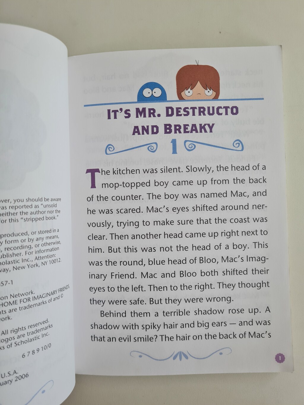 The new show from the creator of The Powerpuff Girls is a smash hit! “An admirable tale of loyalty and adventure-based learning with a contagious sense of fun.” -The NY Times Welcome to Foster’s Home for Imaginary Friends, an orphanage for imaginary friends whose children have outgrown them. The Home’s residents include Bloo, a lovable imaginary friend whose owner, eight-year-old Mac, brings him to Foster’s when his mother tells him he’s too old for an imaginary friend. But Mac and Bloo are determined to stick together. And at Madame Foster’s, they find an unusual but congenial crew of imaginary friends to join them on their many adventures. Junior chapter book #1 tells the story of the show’s pilot episode.