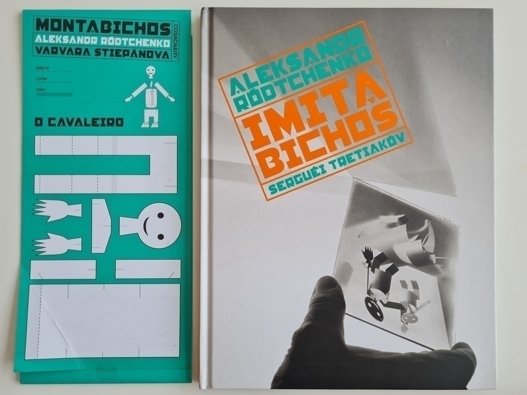 Um simples quarto frequentado por crianças criativas toma ares de circo e de teatro por onde desfilam os bichos anunciados nos versos do poeta russo Serguéi Tretiakóv. Quando surgem, visualizamos a montagem de uma cena feita com parcos recursos de papel, onde figuram bichos e crianças estilizados geometricamente. A cada virada de página, a ação evolui, para surpresa e encantamento do leitor. Serguéi Tretiakóv, autor dos versos de Imitabichos, e Aleksandr Ródtchenko, o ilustrador, são dois artistas emblemáticos que viveram sob as tensões da Revolução Russa. A expectativa do título se curmpre na leitura, mas é principalmente um convite para o leitor observar com atenção a montagem de cada cena fotografada (no uso da luz, na disposição dos bonecos, na construção de cada personagem) e capturar a técnica para montar a sua própria história. Resenha Especializada – A Taba