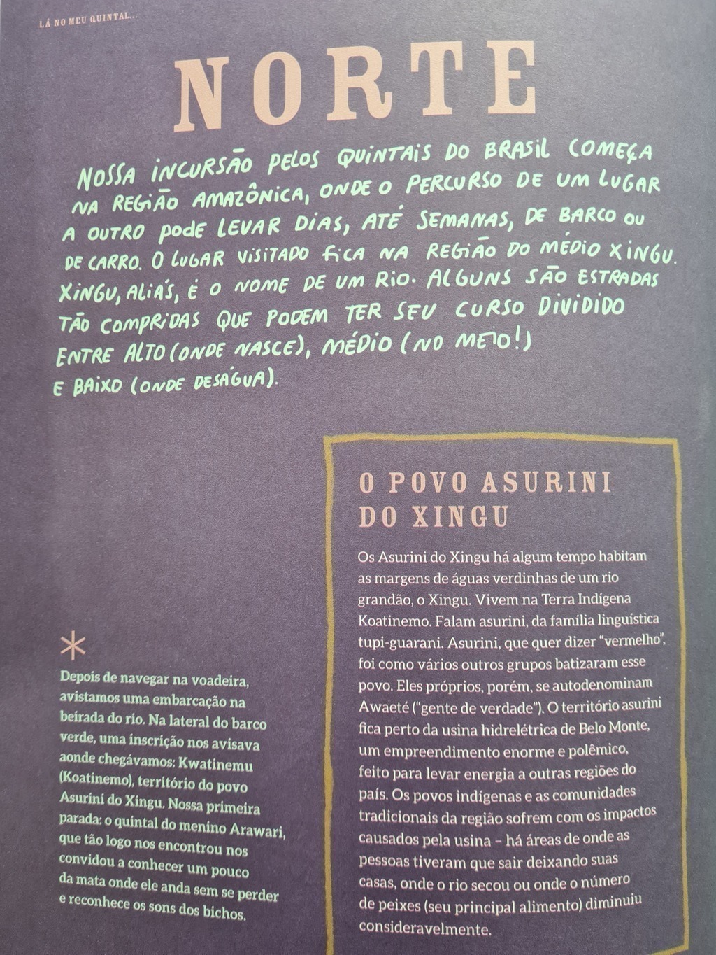 O brincar é uma espécie de língua-mãe da infância. E foi exercitando essa língua que as autoras, em parceria com o fotógrafo Samuel Macedo, percorreram e conheceram nos últimos anos o país, conectando-se com as crianças das beiradas de rios, dos grandes centros urbanos, de comunidades quilombolas e povos indígenas algumas regiões próximas, e outras bem distantes. A obra traz o cotidiano das crianças em seus quintais e os muitos jeitos de experienciar a infância. Seja em uma cidade grande ou pequena, comunidade ribeirinha ou quilombola, o brincar é o que une todas as infâncias, de norte a sul. Compartilhamos no livro brincadeiras que encontramos, aprendemos e exercitamos nas cinco regiões brasileiras, mas vale ressaltar que os brincares não estão circunscritos a um só território, a uma só região, circulam livremente e vão mudando, de lugar para lugar, de geração para geração.